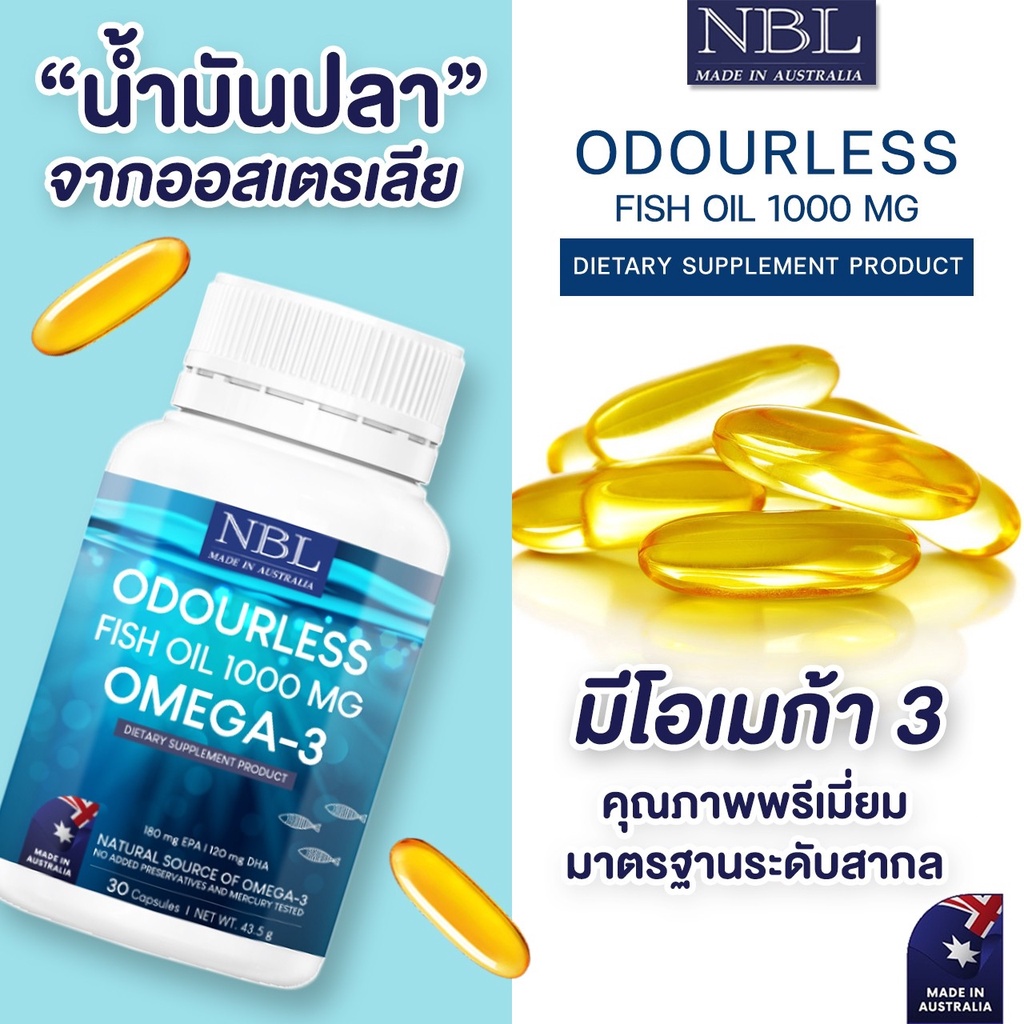 NBL Odourless Fish Oil 1000 MG OMEGA-3 - น้ำมันปลาสูตรไร้กลิ่น 1000 มก. (30 Capsules)