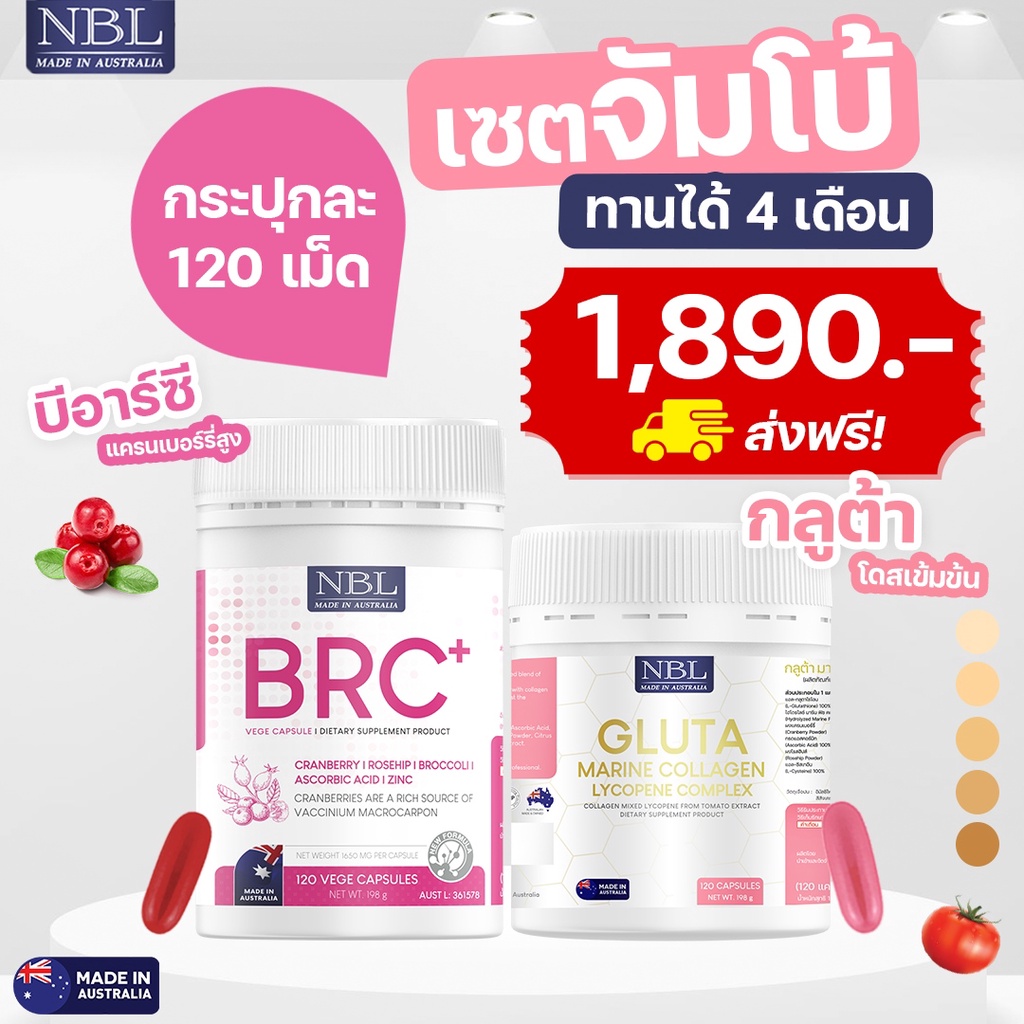[ชุดโปรโมชั่นจัมโบ้] NBL Gluta Marine Collagen Lycopene Complex + NBL BRC+ Vege Capsule (120 Capsules)