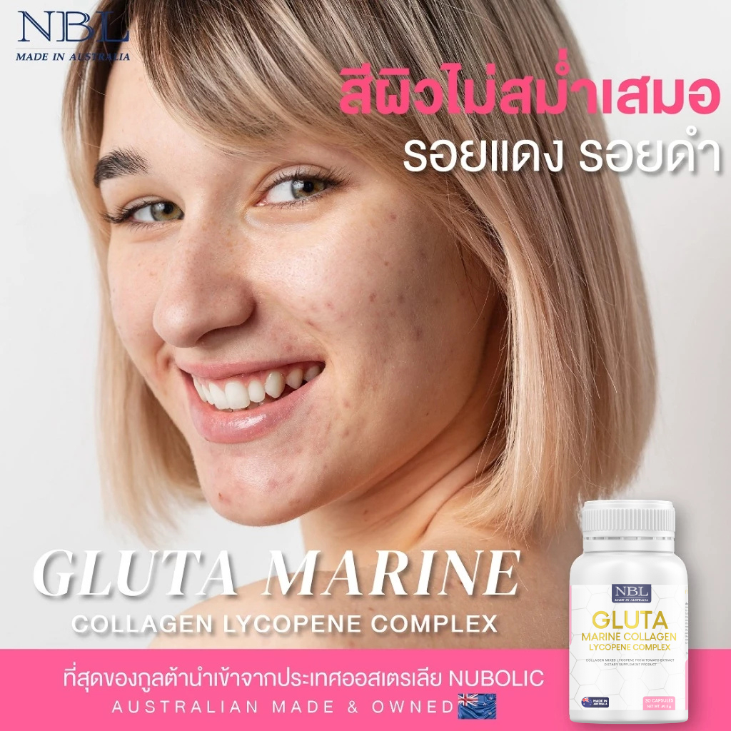 [โปรรายการแฉ] NBL Gluta Marine Collagen Lycopene Complex - กลูต้า มารีน คอลลาเจน กลูต้าที่ไบร์ท เบญ เลือก (30 Capsules)