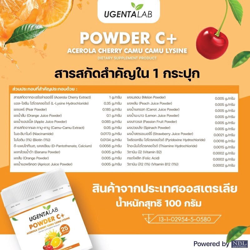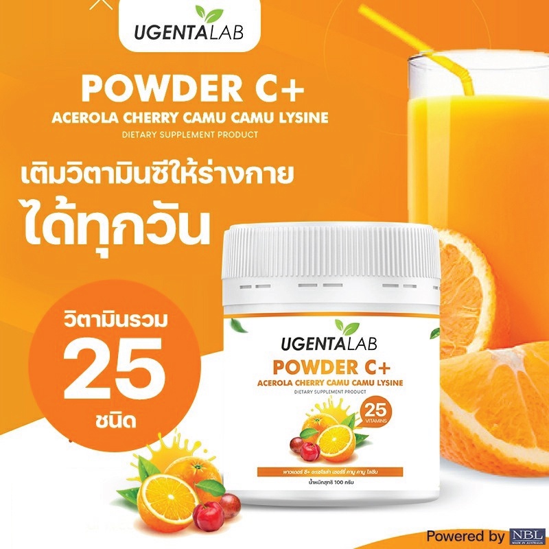[โปร 1 แถม 1] UGENTALAB Powder C+ Acerola Cherry Camu Camu Lysine วิตามินซี+ อะเซโรร่าเชอร์รี่ (100 กรัม)