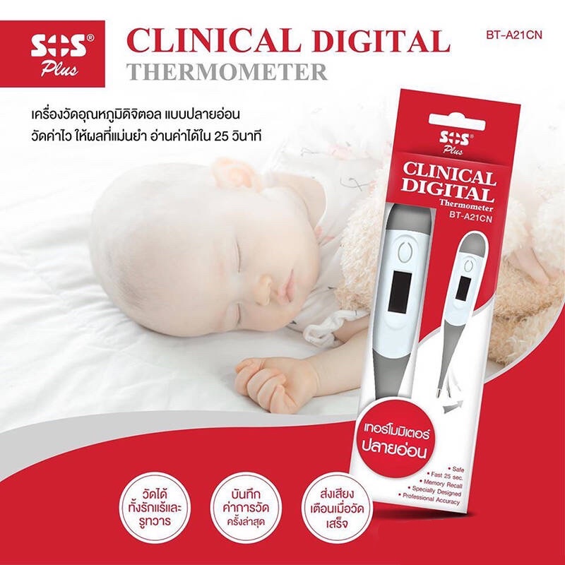 ปรอทวัดไข้ดิจิตอล ❤️พร้อมส่งจากร้านยา❤️ SOS Clinical digital Thermometer ใช้ง่าย มาตรฐานสูง ปลอดภัย