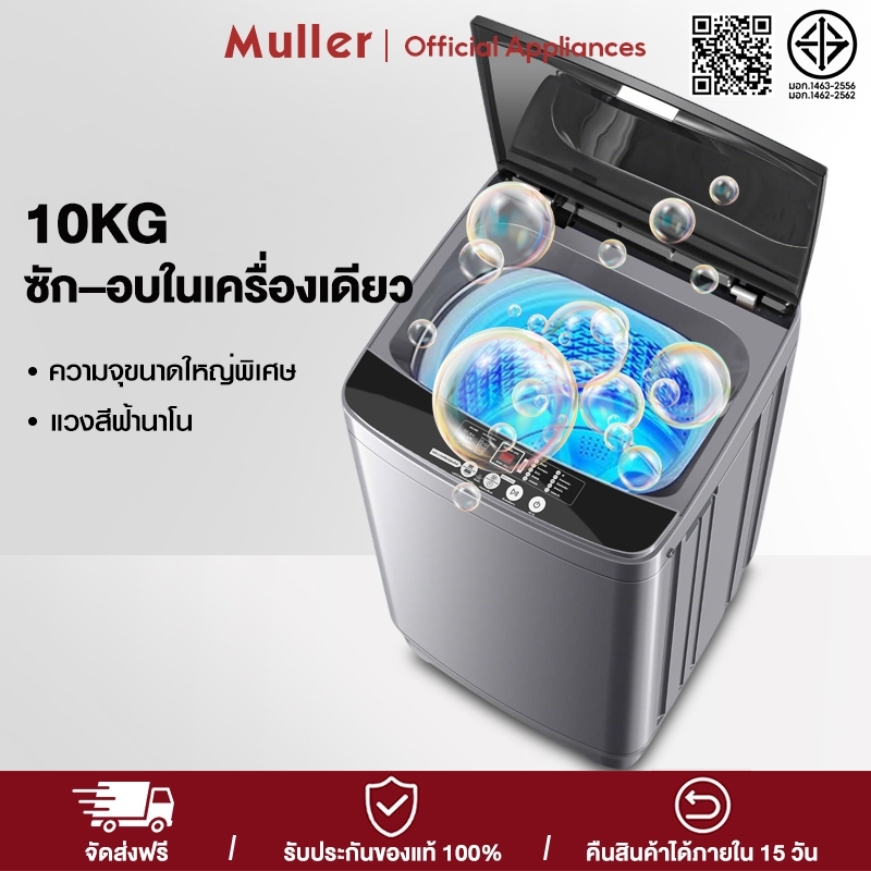 Muller เครื่องซักผ้า 10 Kgฟังก์ชั่น 2 In 1 ซักและปั่นแห้งในตัวเดียวกัน ความจุขนาดใหญ่ Washing machine ระบบเป่าแห้งแรง