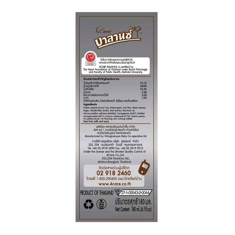 4 Care Balance เครื่องดื่มน้ำจมูกข้าว สูตรงาดำ(เจ) ขนาด 180 มล.(03748)