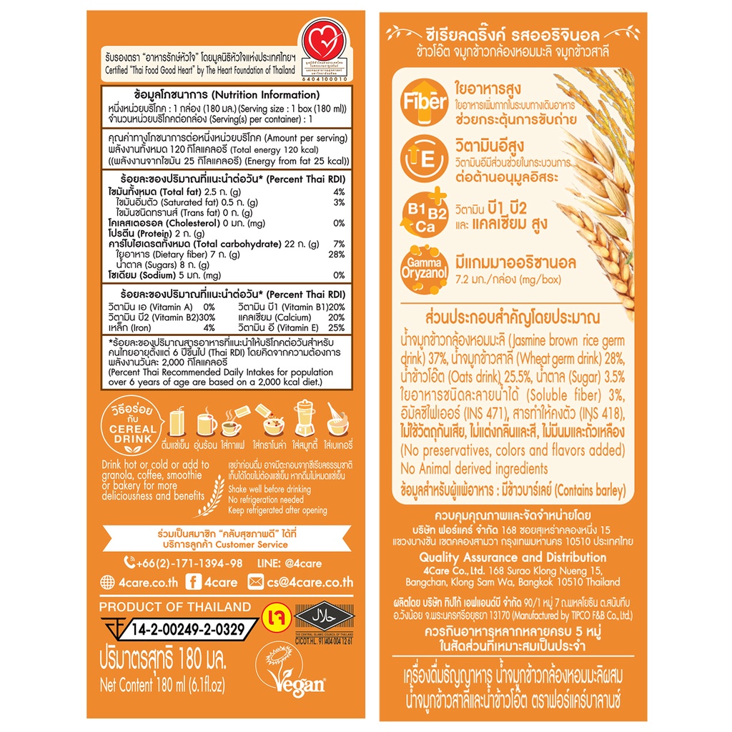 4 Care Balance เครื่องดื่มน้ำจมูกข้าวสูตรต้นตำรับ(เจ) ขนาด180 มล.(03754) EXP. 17/09/2026