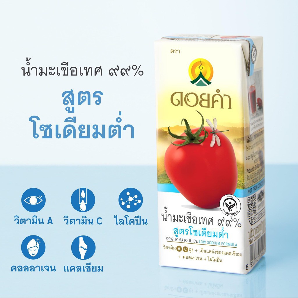 [ยกลัง] ดอยคำ น้ำมะเขือเทศ 99% สูตรโซเดียมต่ำ ขนาด 200 มล. (03608-36)