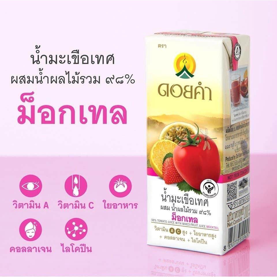 ดอยคำ น้ำมะเขือเทศผสมน้ำผลไม้รวม 98% ม็อกเทล 200 มล. (03614) Exp. 16/11/2025