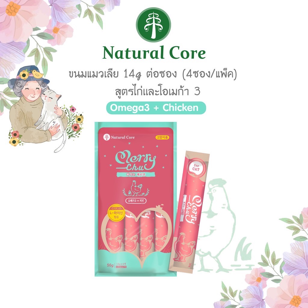 [14g x 3-4ซอง] Natural Core เนเชอรัล คอร์ Merry Chu ขนมแมวเลีย นำเข้าจากเกาหลี 14 กรัม