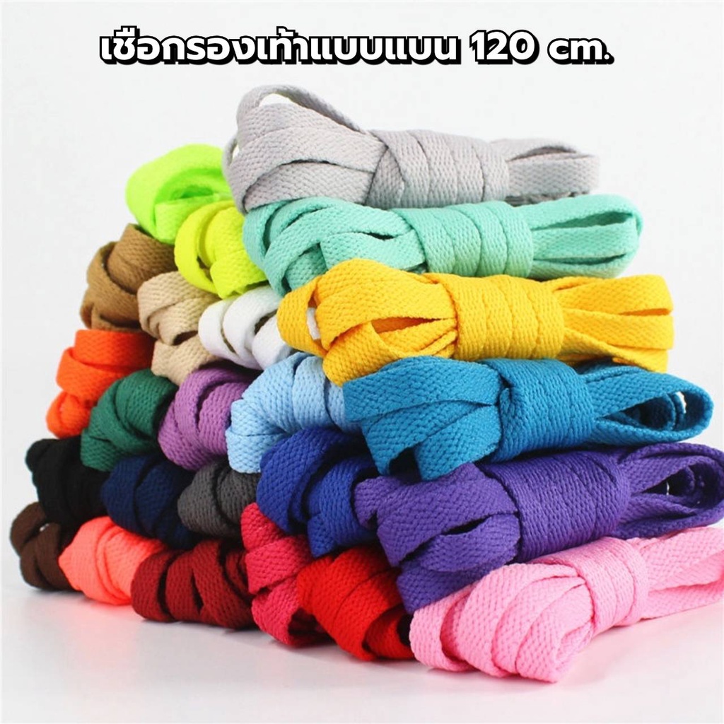 เชือกรองเท้าแบบแบน (1คู่) ยาว 120cm มีให้เลือก 22 สี (พร้อมส่งจากไทย)