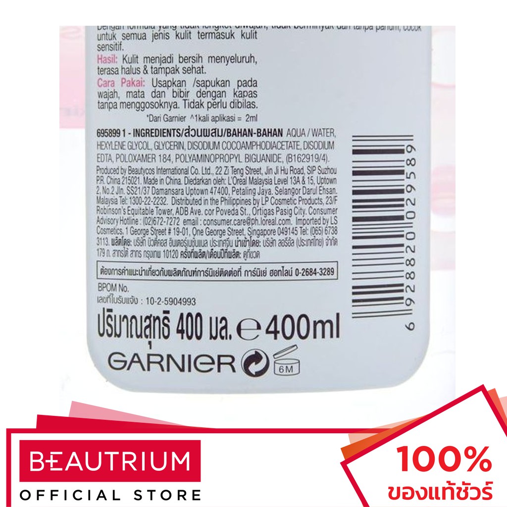 GARNIER Skin Naturals Micellar Cleansing Water ที่เช็ดเครื่องสำอาง 400ml