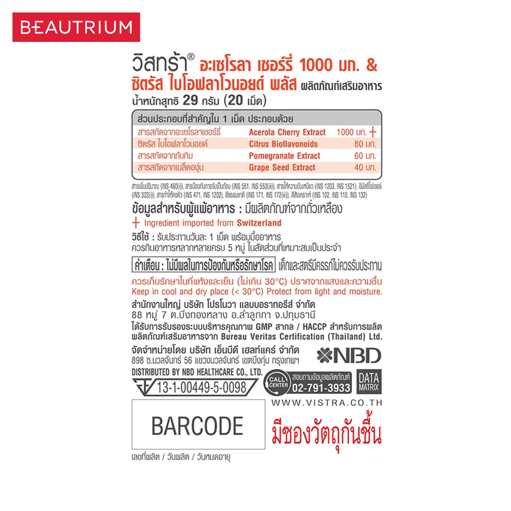 VISTRA Acerola Cherry ผลิตภัณฑ์เสริมอาหาร 20 tablets