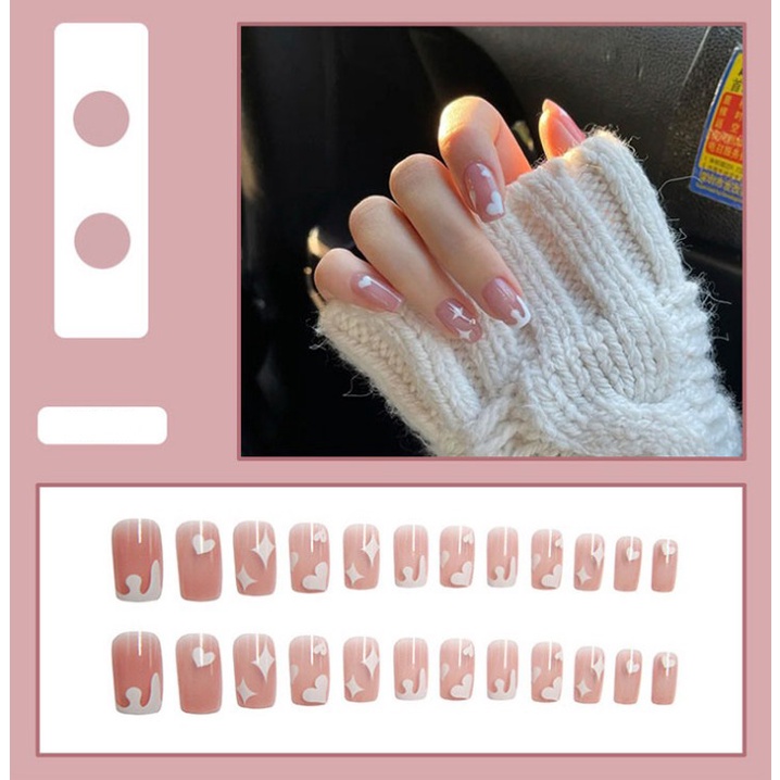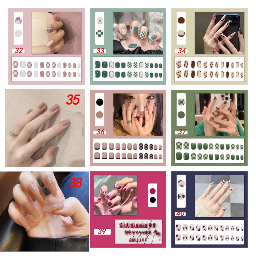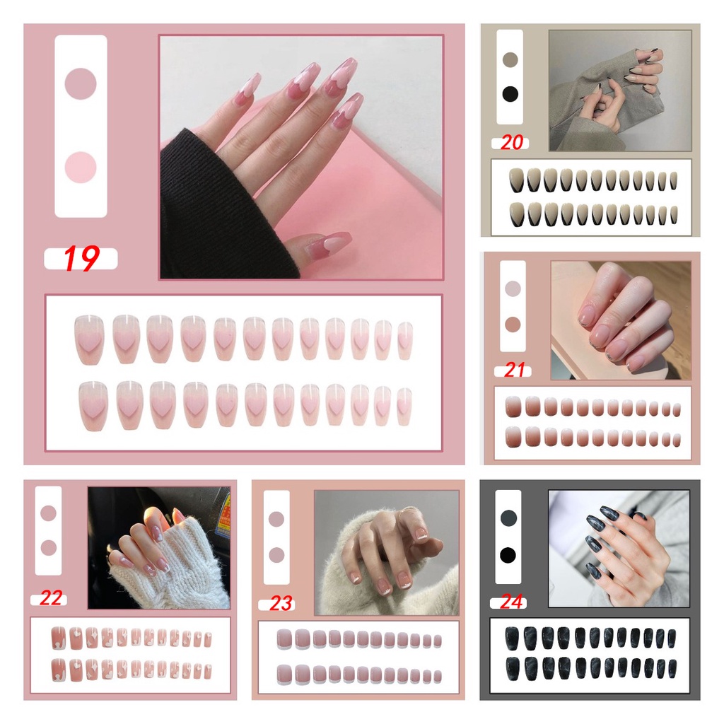 เล็บปลอม พร้อมกาว 24 ชิ้น สําหรับต่อเล็บปลอม ฟรีตะไบเล็บ มีลายให้เลือกหลากหลาย 2022