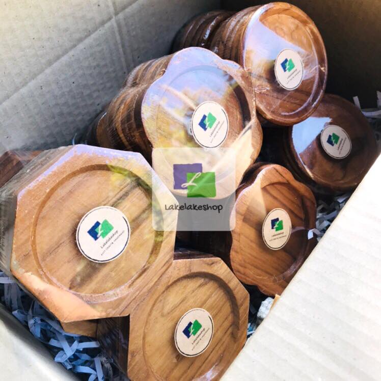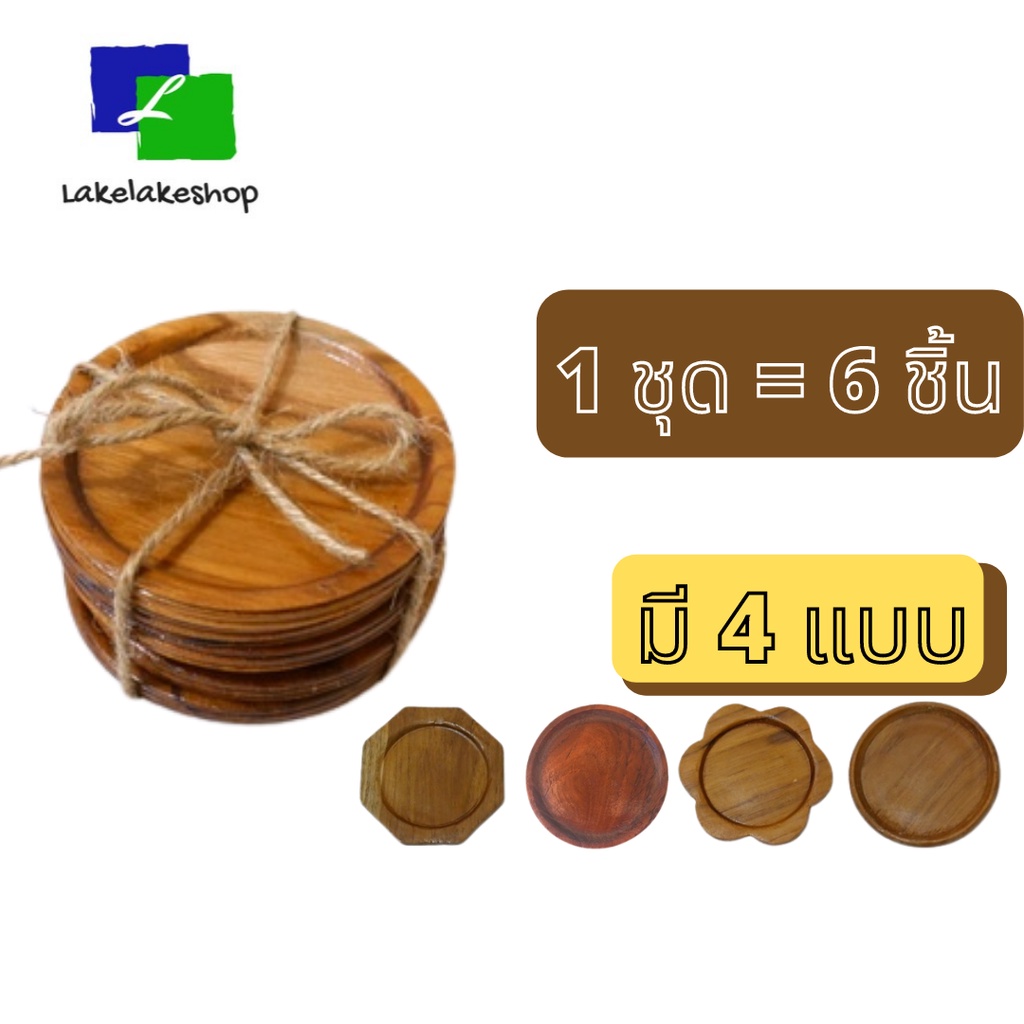 สินค้าขายดี! [1ชุดมี6ชิ้น] จานรองแก้วไม้ handmade ชุด