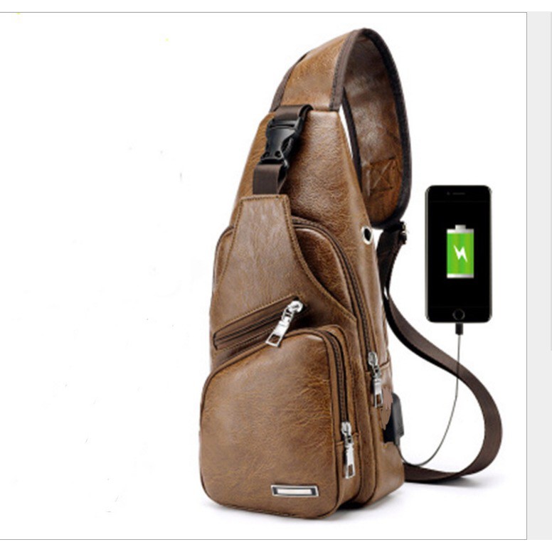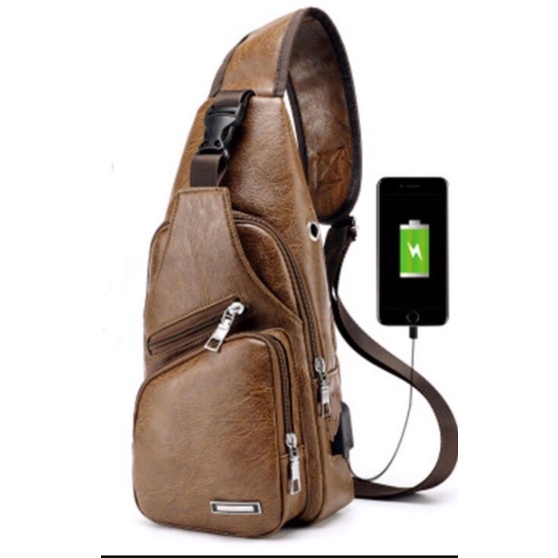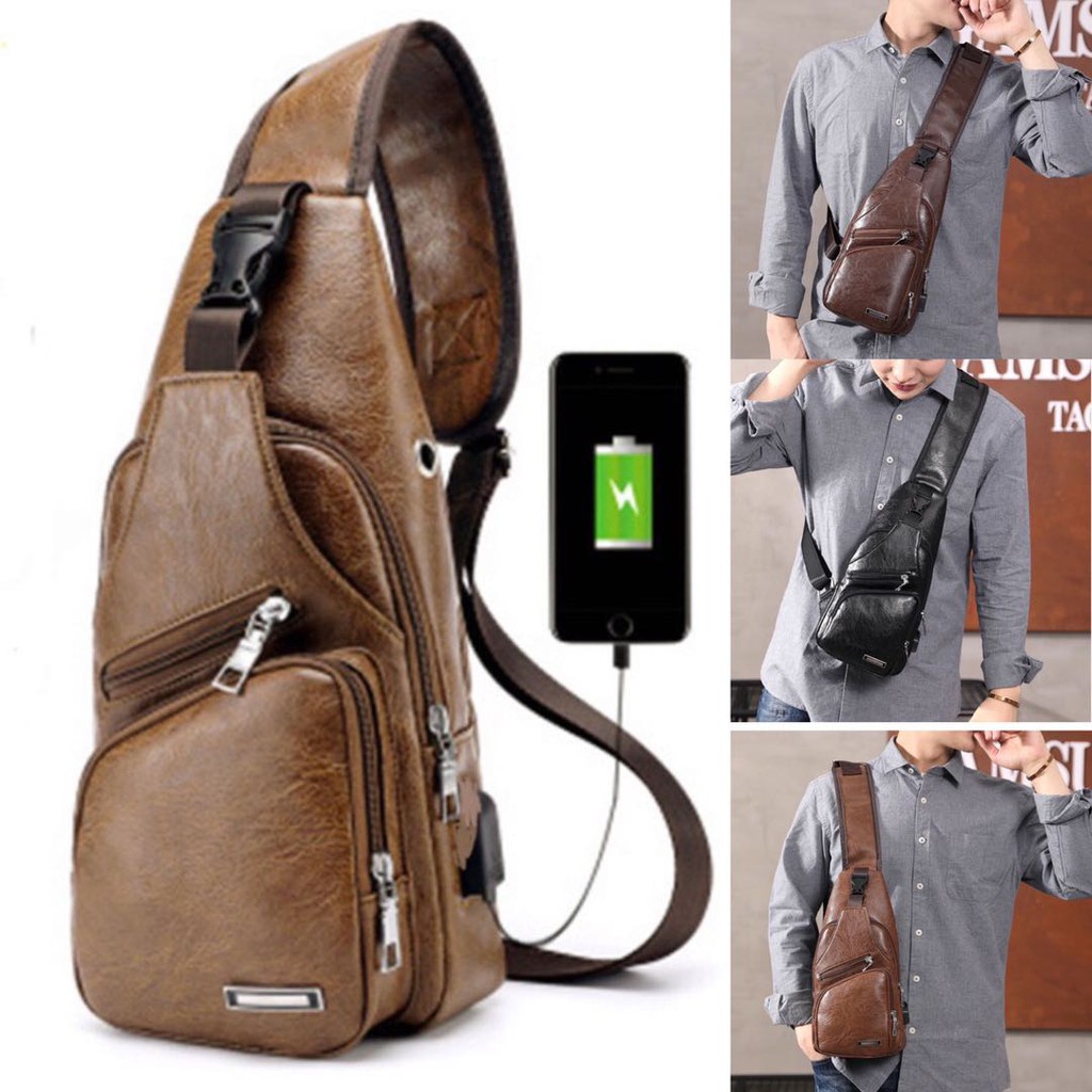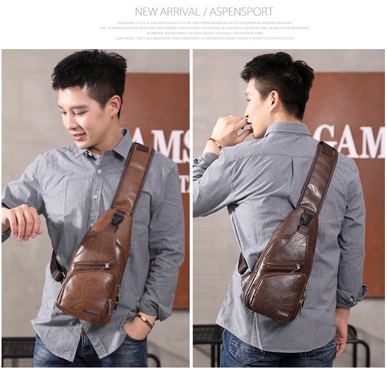 พร้อมส่ง! กระเป๋าสะพายข้าง พาดลำตัว กระเป๋าคาดอก หนัง PU ผู้ชาย รุ่น NO.18-1 (มี 4 สี)