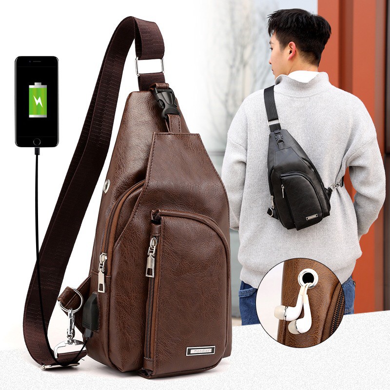 พร้อมส่ง🚚💨กระเป๋าสะพายข้าง พาดลำตัวสีดำ กระเป๋าคาดอก ผู้ชาย รุ่น NO.654 (มี 3 สี)