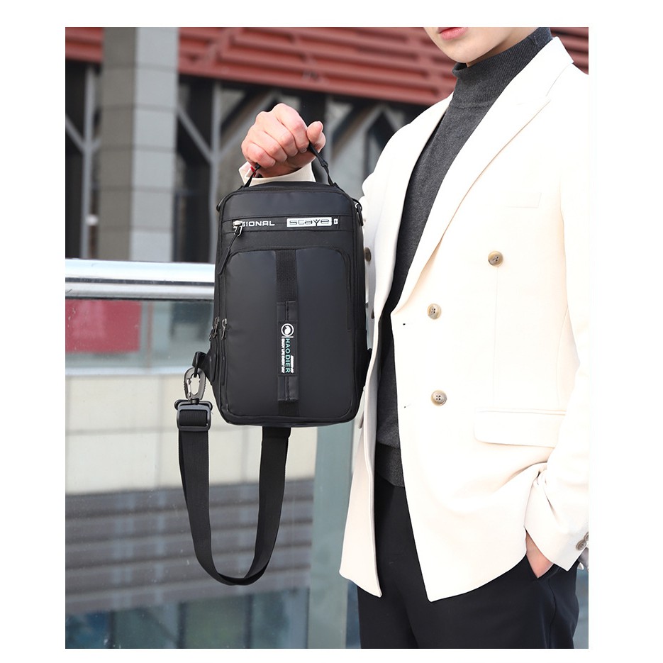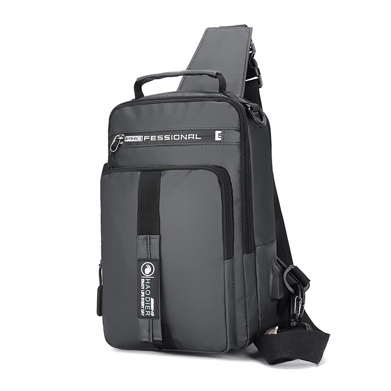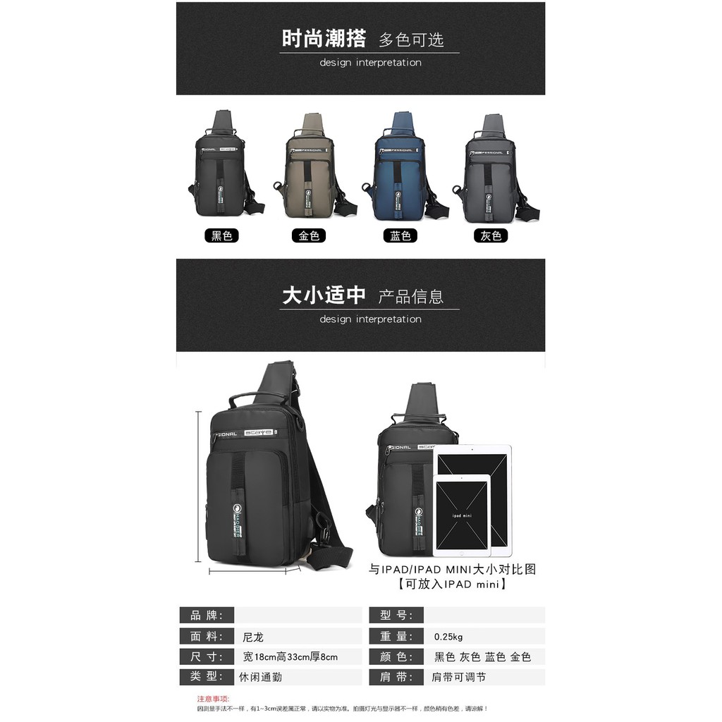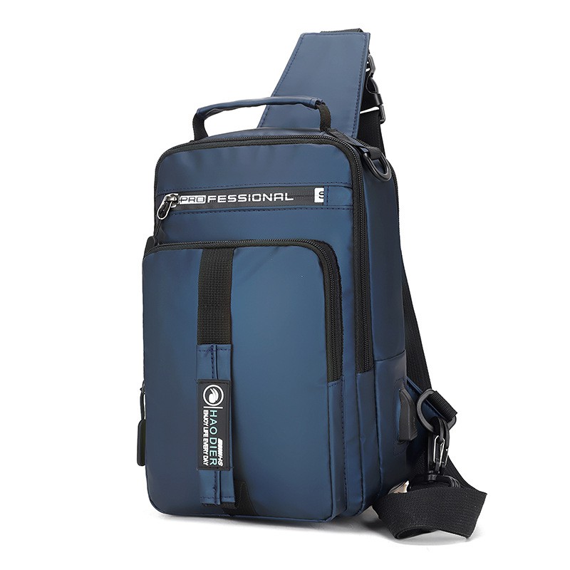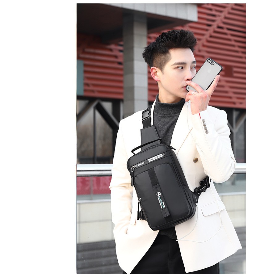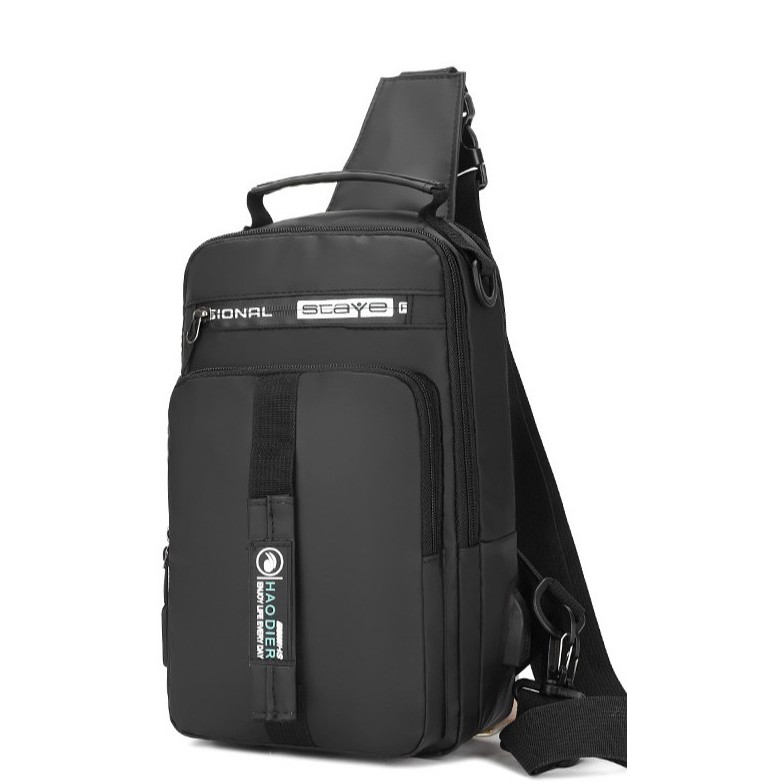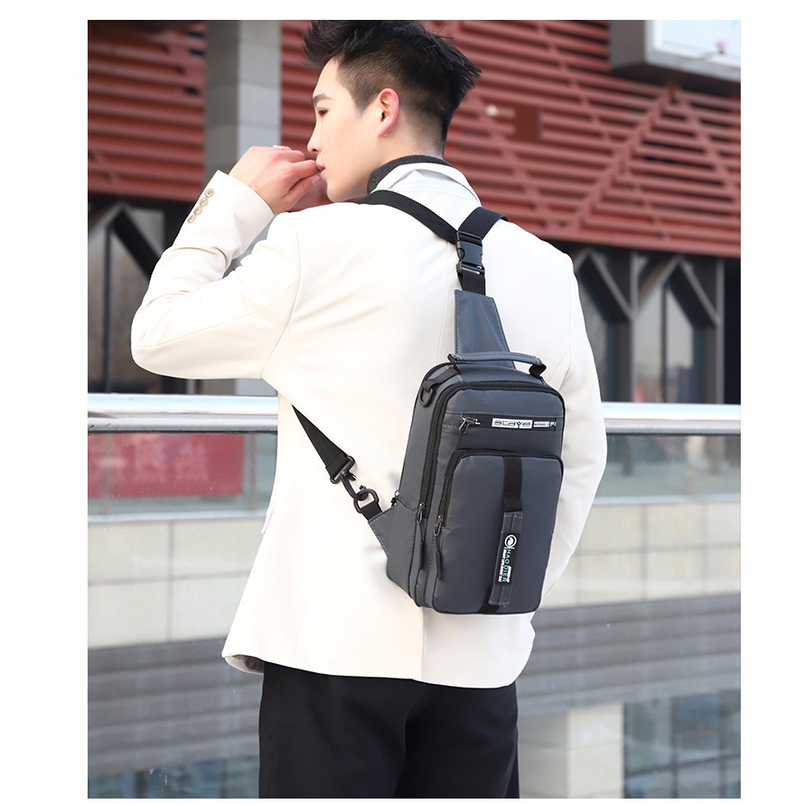 (BA-029) กระเป๋าคาดอก กระเป๋าผู้ชายสะพายข้างพาดลำตัว ผ้ากันน้ำ มีช่อง USB สำหรับชาร์จแบตมือถือ