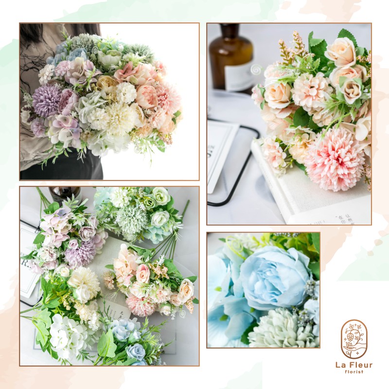 ช่อดอกไ ม้ประดิษฐ์ ดอกไม้ปลอมสำเร็จรูป ช่อรวมผสมหลาย 15 แบบ สำหรับตกแต่งบ้าน ตกแต่งห้อง