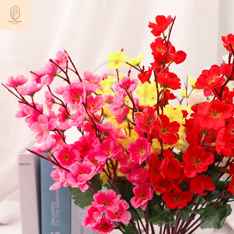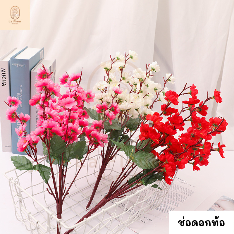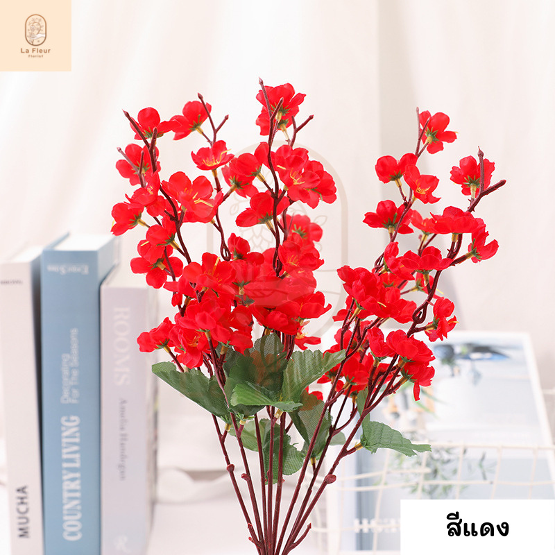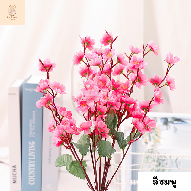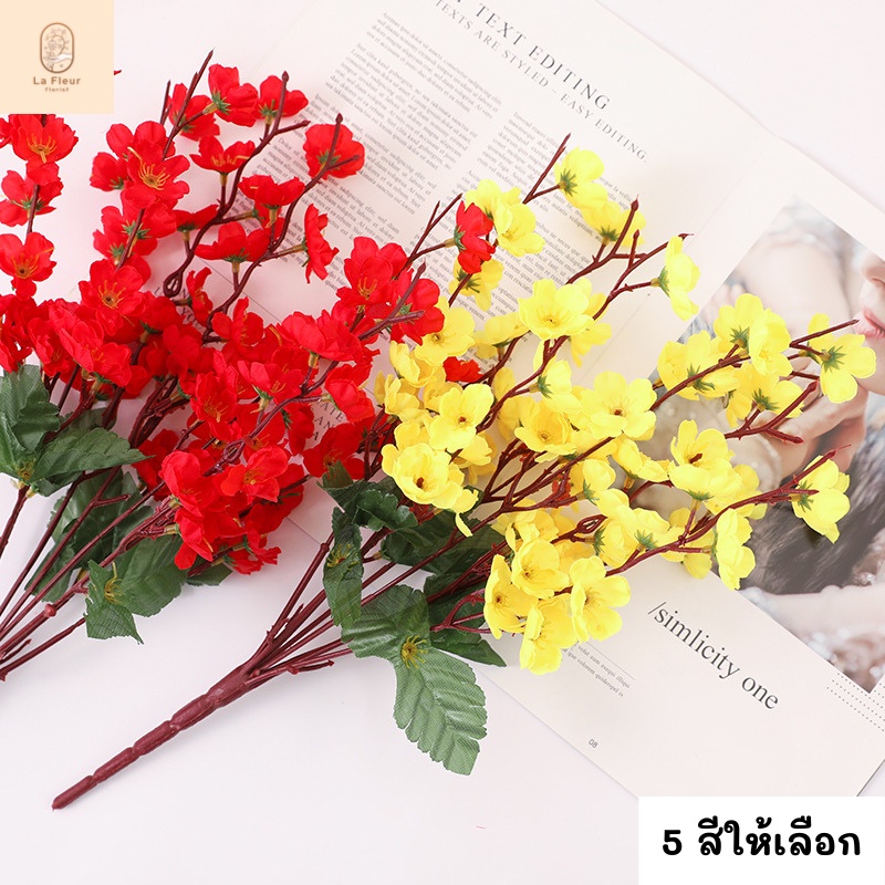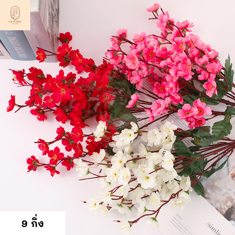 ช่อดอกแบบสั้น ท้อ 9 กิ่ง 81 ดอก ดอกท้อ ดอกไม้ประดิษฐ์ ดอกท้อปลอม 5 สี ยาว 42 ซม. ตกแต่งบ้าน ตกแต่งสวน ตกแต่งแจกัน