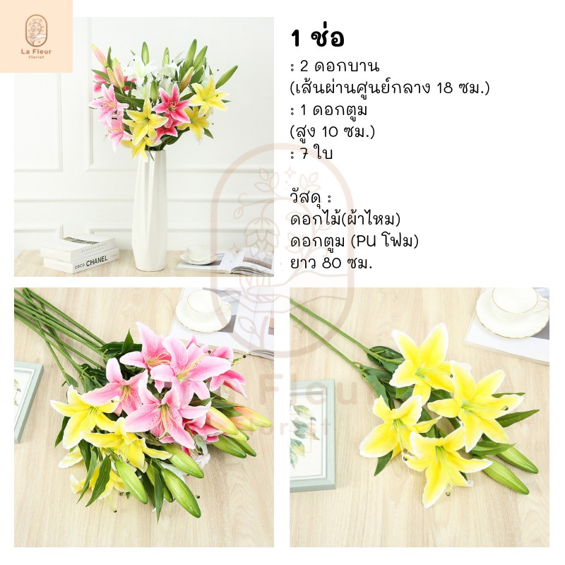 ช่อดอกลิลลี่ประดิษฐ์ ดอกลิลลี่ปลอม ดอกไม้ประดิษฐ์ ดอกไม้ปลอม ตกแต่งบ้าน ตกแต่งห้อง ลิลลี่ป่