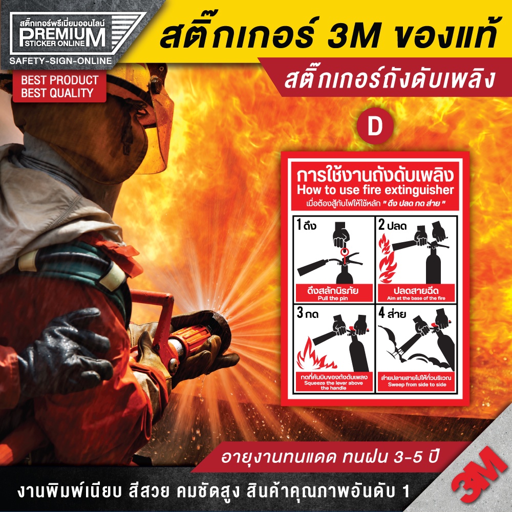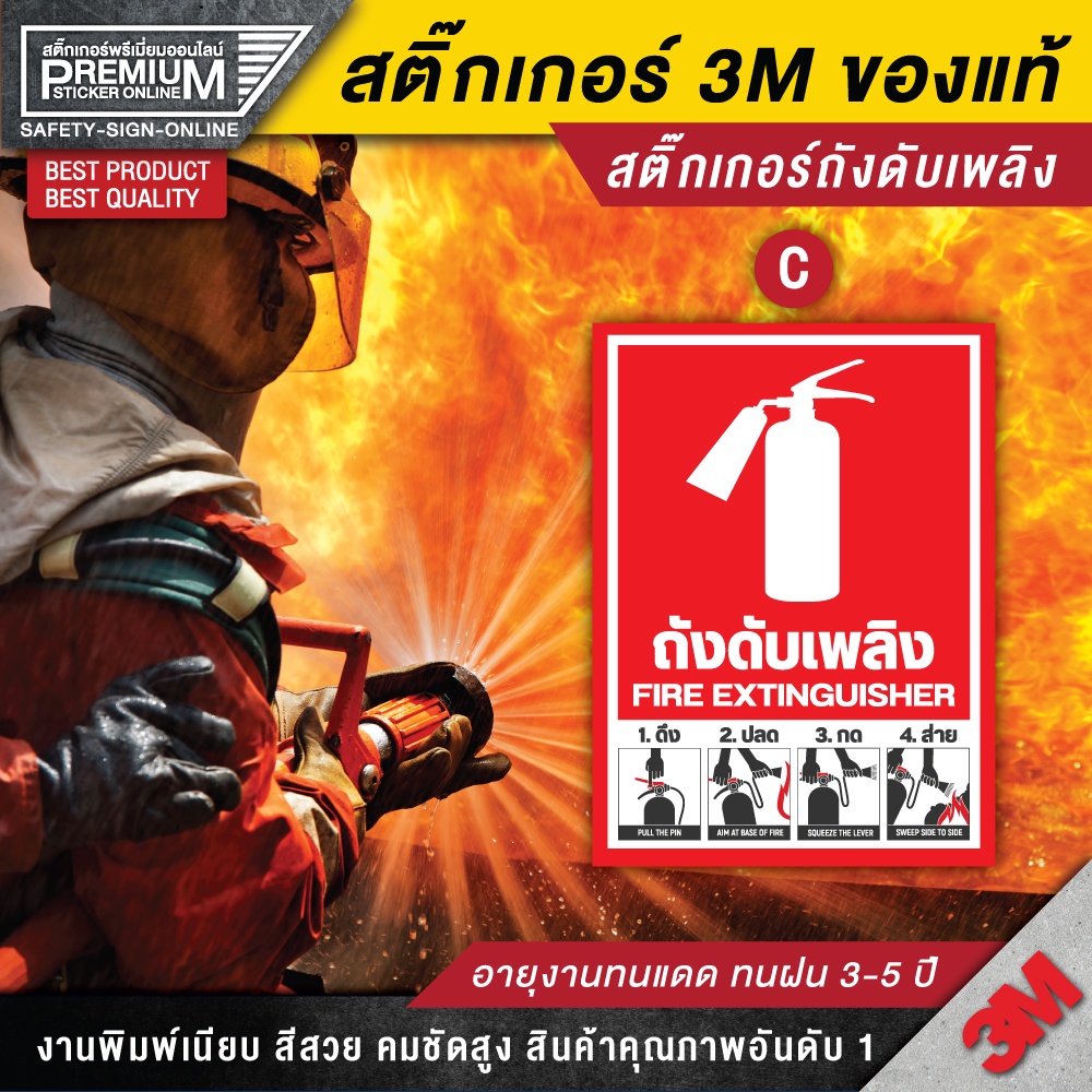 สติ๊กเกอร์ถังดับเพลิง ป้ายถังดับเพลิง ป้ายเครื่องดับเพลิง ถังดับเพลิง (PVC 3M เกรดพรีเมี่ยม) FIRE