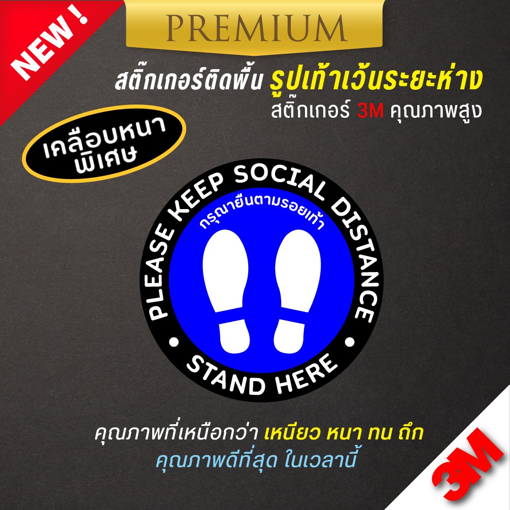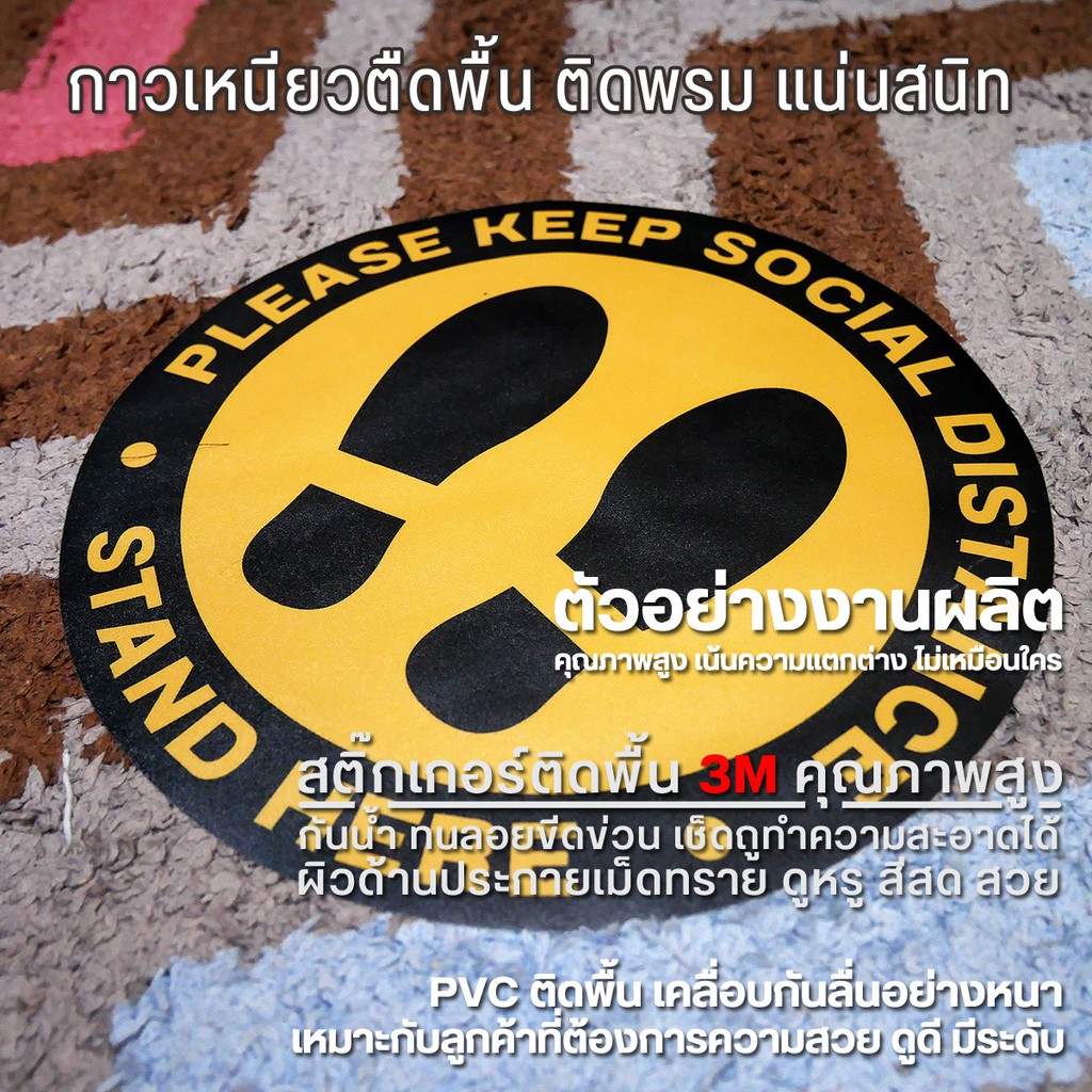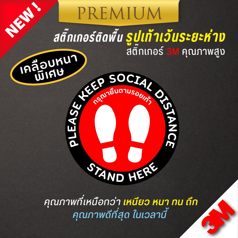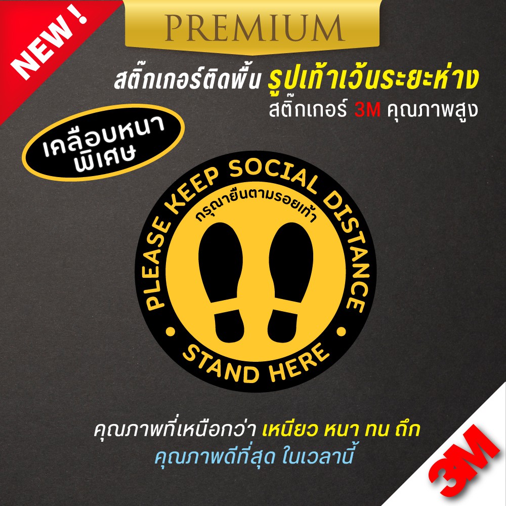 สติ๊กเกอร์โควิด สติ๊กเกอร์ COVID ติดพื้น รูปเท้า ระบุตำแหน่งเข้าคิวเว้นระยะห่าง ( PVC 3M เคลือบหนามาก คุณภาพดีทีสุด)
