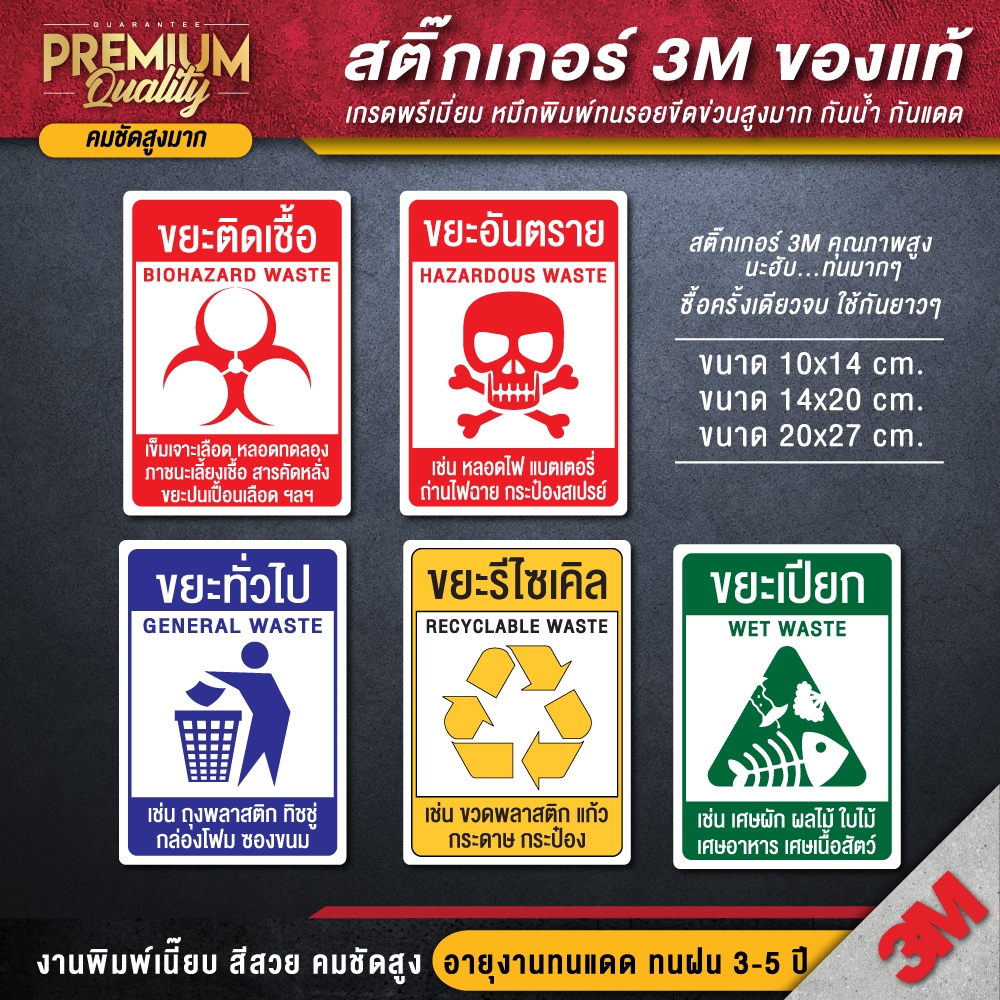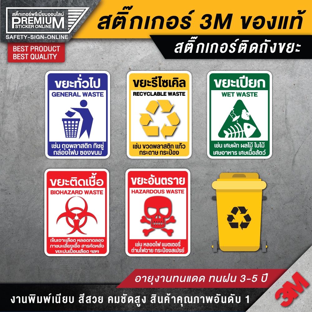 สติ๊กเกอร์ติดถังขยะ ป้ายติดถังขยะ สติ๊กเกอร์แยกขยะ ป้ายแยกขยะ ถังขยะ ขยะติดเชื้อ ขยะทั่วไป ขยะรีไซเคิล ขยะอันตราย