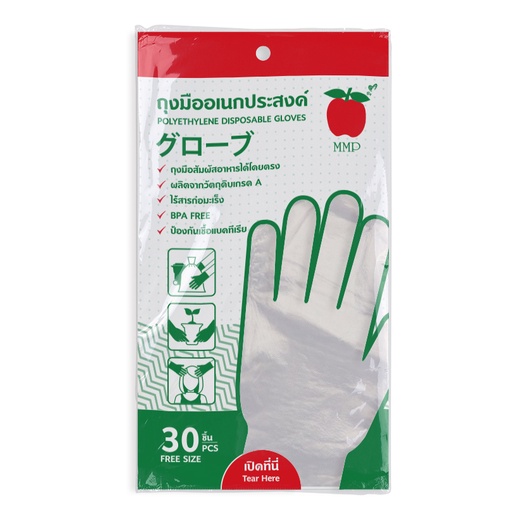 1 แถม 1 ถุงมือพลาสติก HDPE ป้องกันเชื้อแบคทีเรีย 30 ชิ้น/แพ็ค