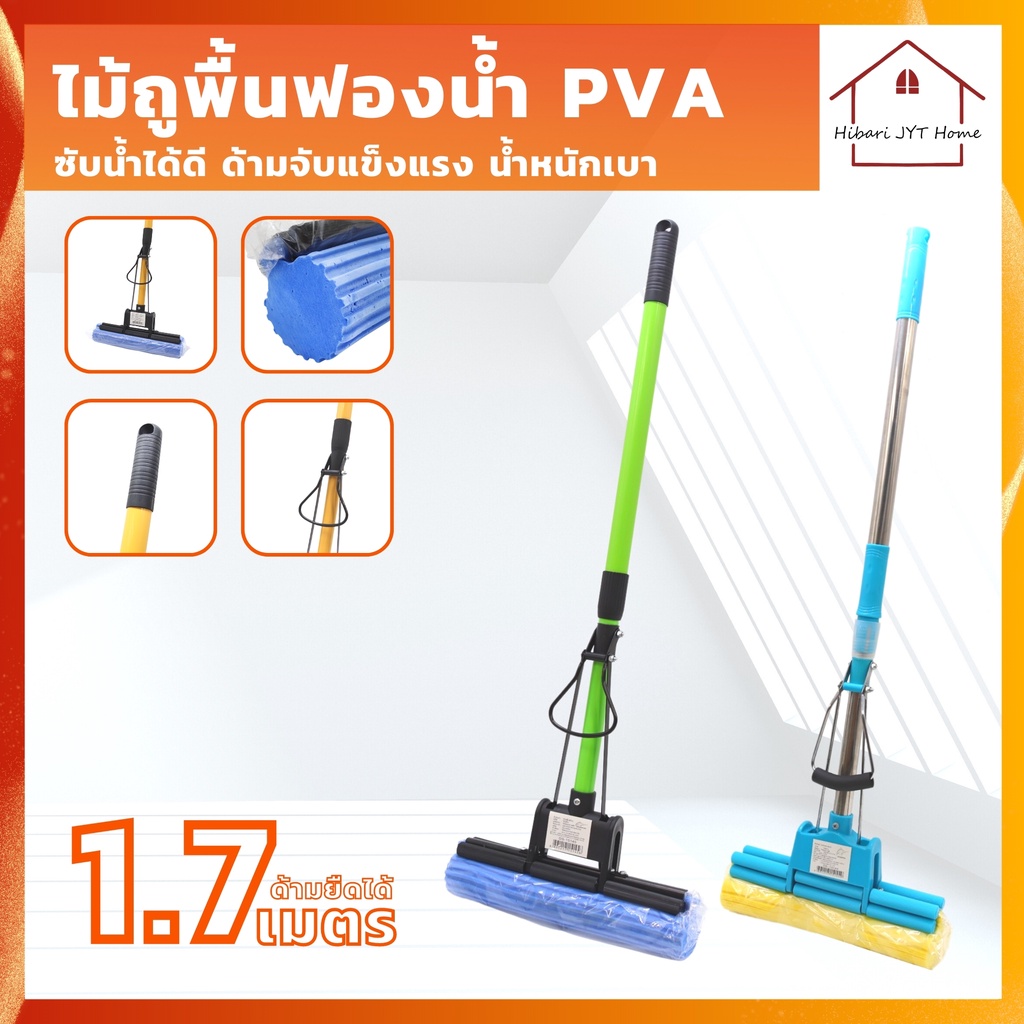 📢 [ลูกค้าใหม่ 1 บาท] ไม้ถูพื้น ไม้ม๊อบหัวฟองน้ำ ขนาด27x107CM