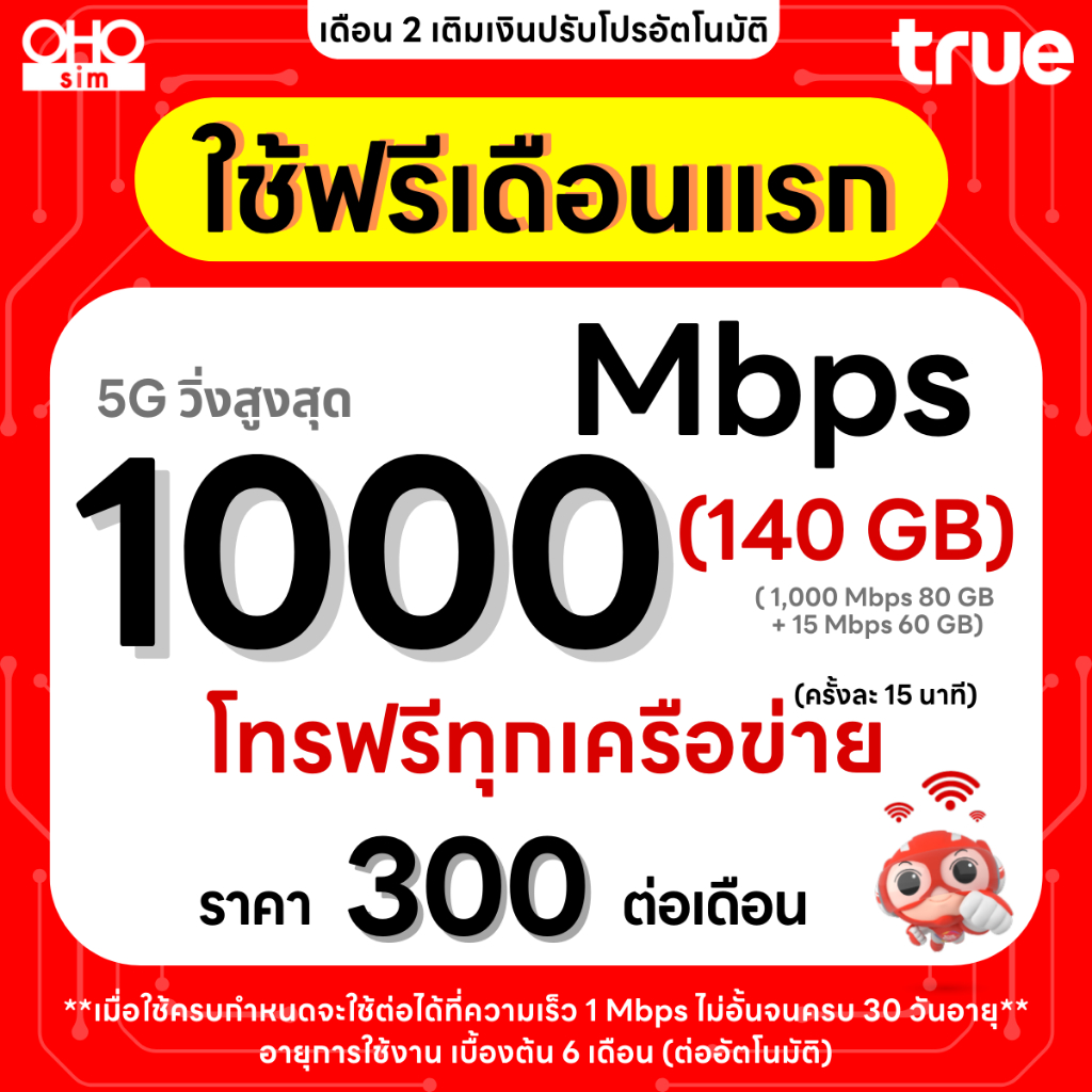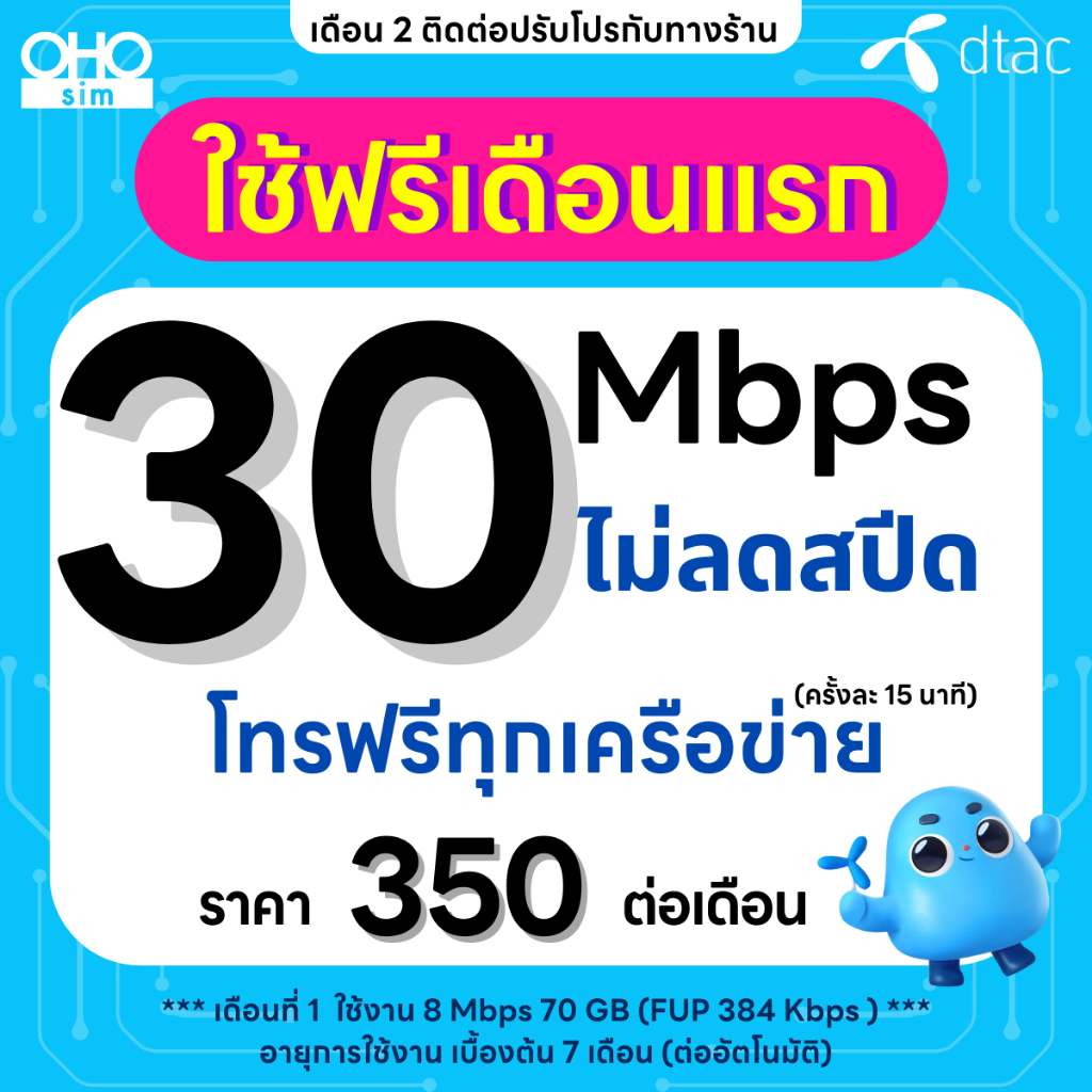 ส่งด่วน 🛵 (ฟรีเดือนแรก ลงทะ เบียนก่อนใช้งาน) - ซิม TRUE , DTAC เน็ตไม่อั้น 30 Mbps ไม่ลดสปีด ไม่จำกัด GB + โทรฟรี