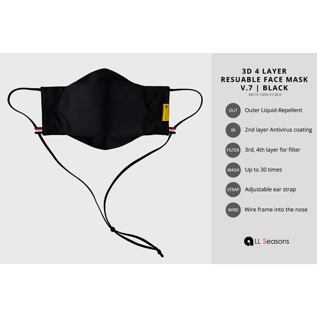 แมส ผ้าปิดจมูก ปิดปาก ทรง 3D 4ชั้น กันน้ำ พร้อมสายคล้องคอ ซักใช้ซ้ำได้ มี9สี