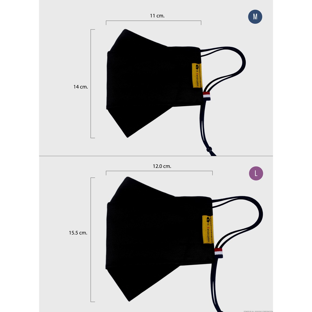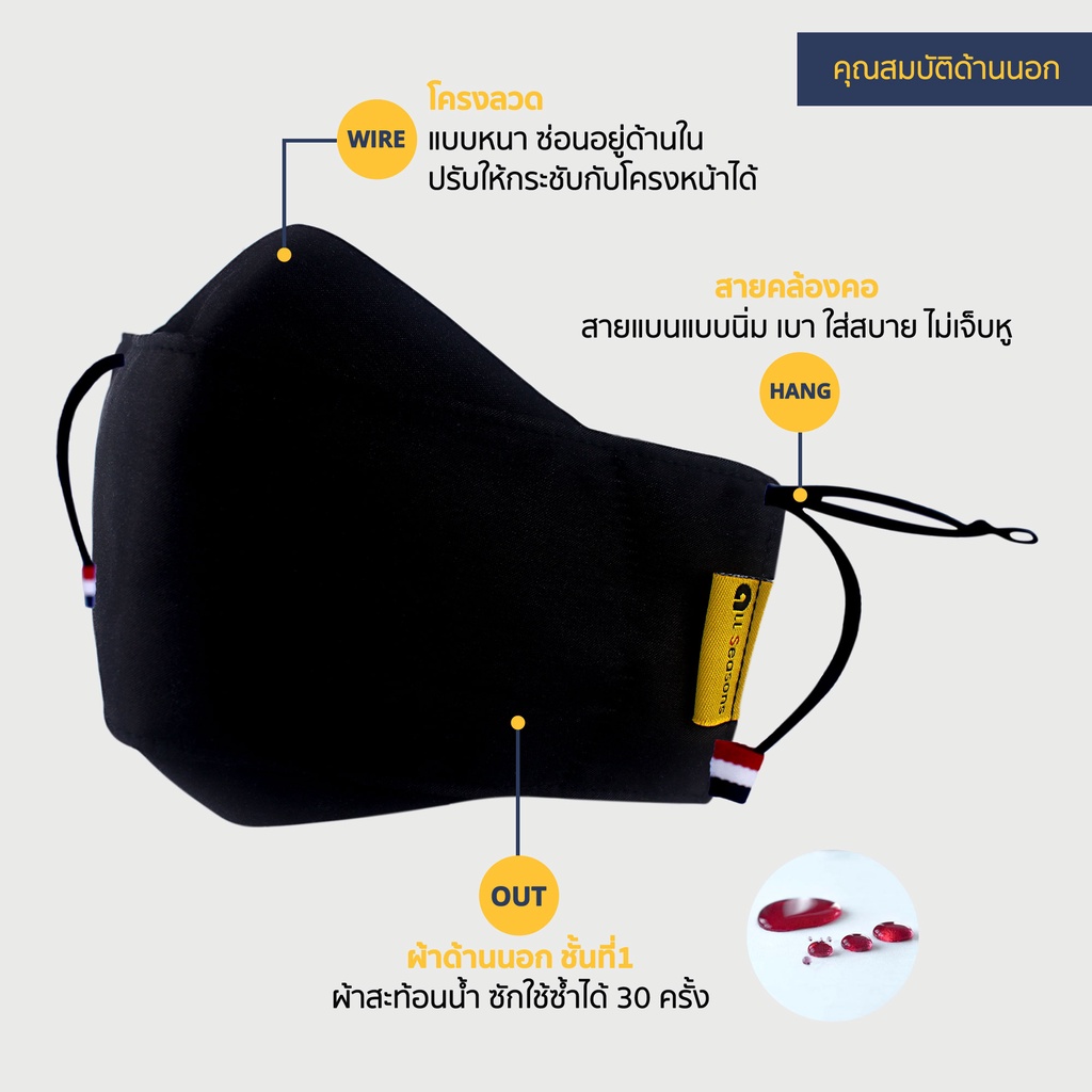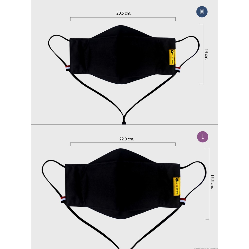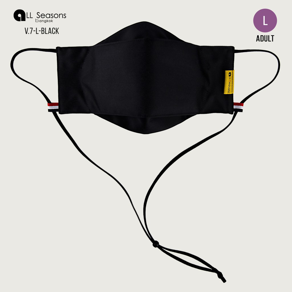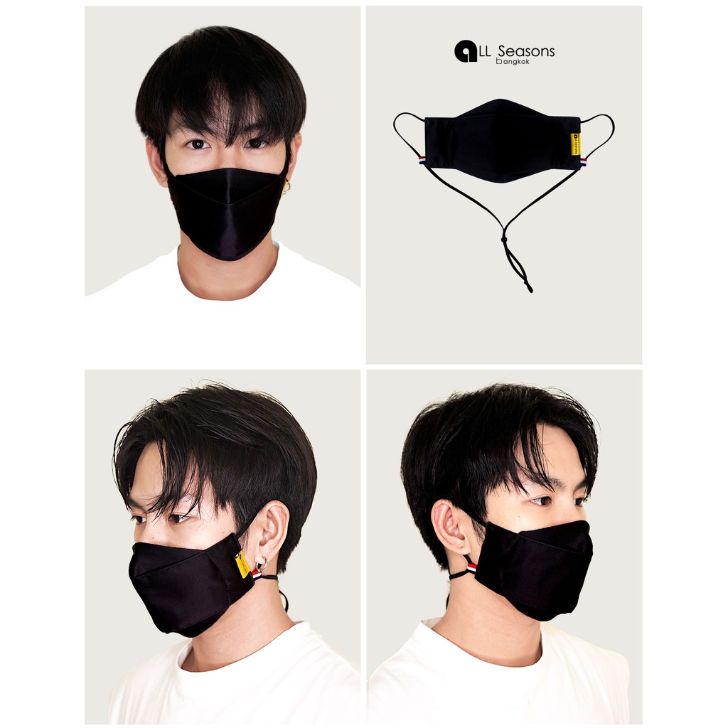 หน้ากากผ้าปิดจมูก ปิดปาก ทรง 3D 4ชั้น กันน้ำ พร้อมสายคล้องคอ ซักใช้ซ้ำได้ V.7 - สีดำ
