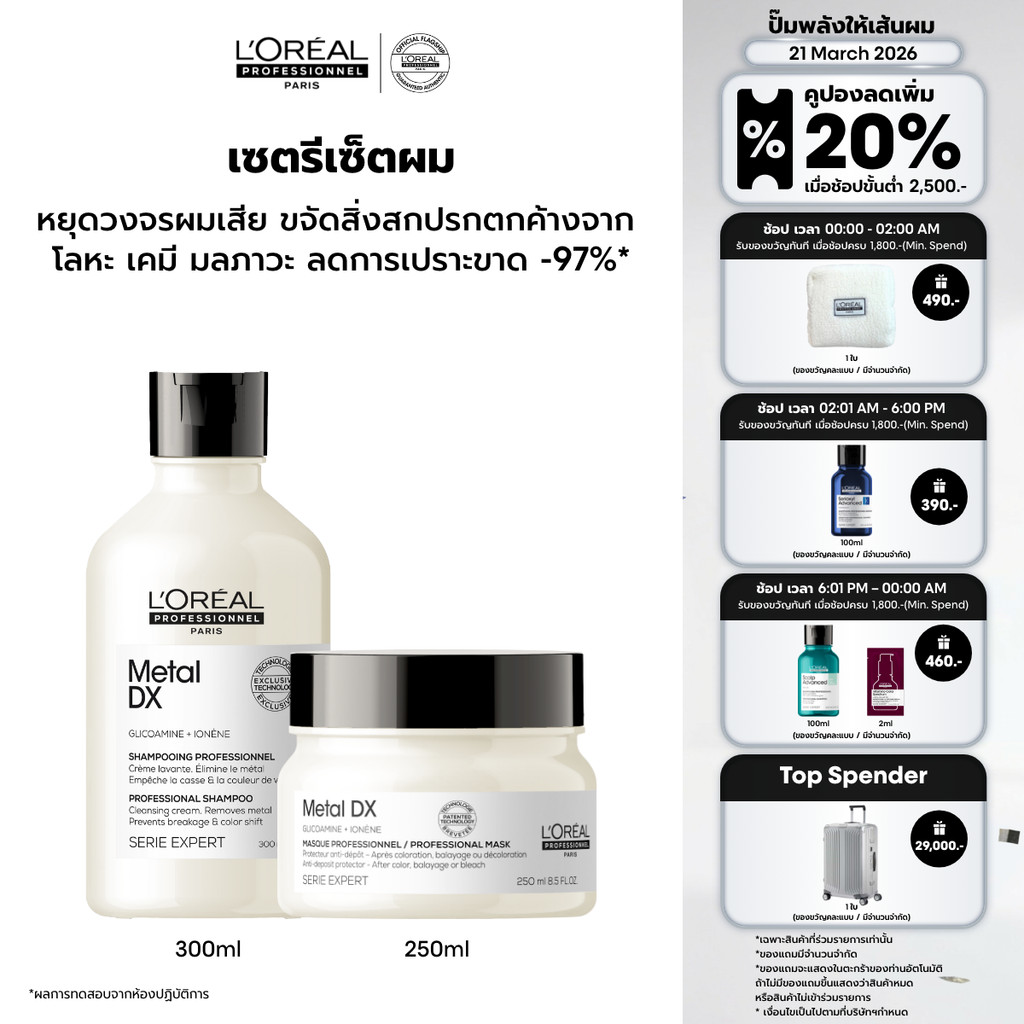 [เซตแชมพู+มาส์ก] L'Oreal Professionnel Metal DX เซตดูแลผมเปราะขาดหลังการทำสี 300ml + 250ml