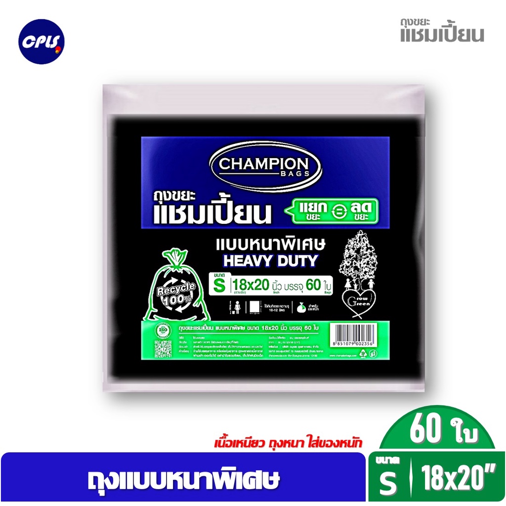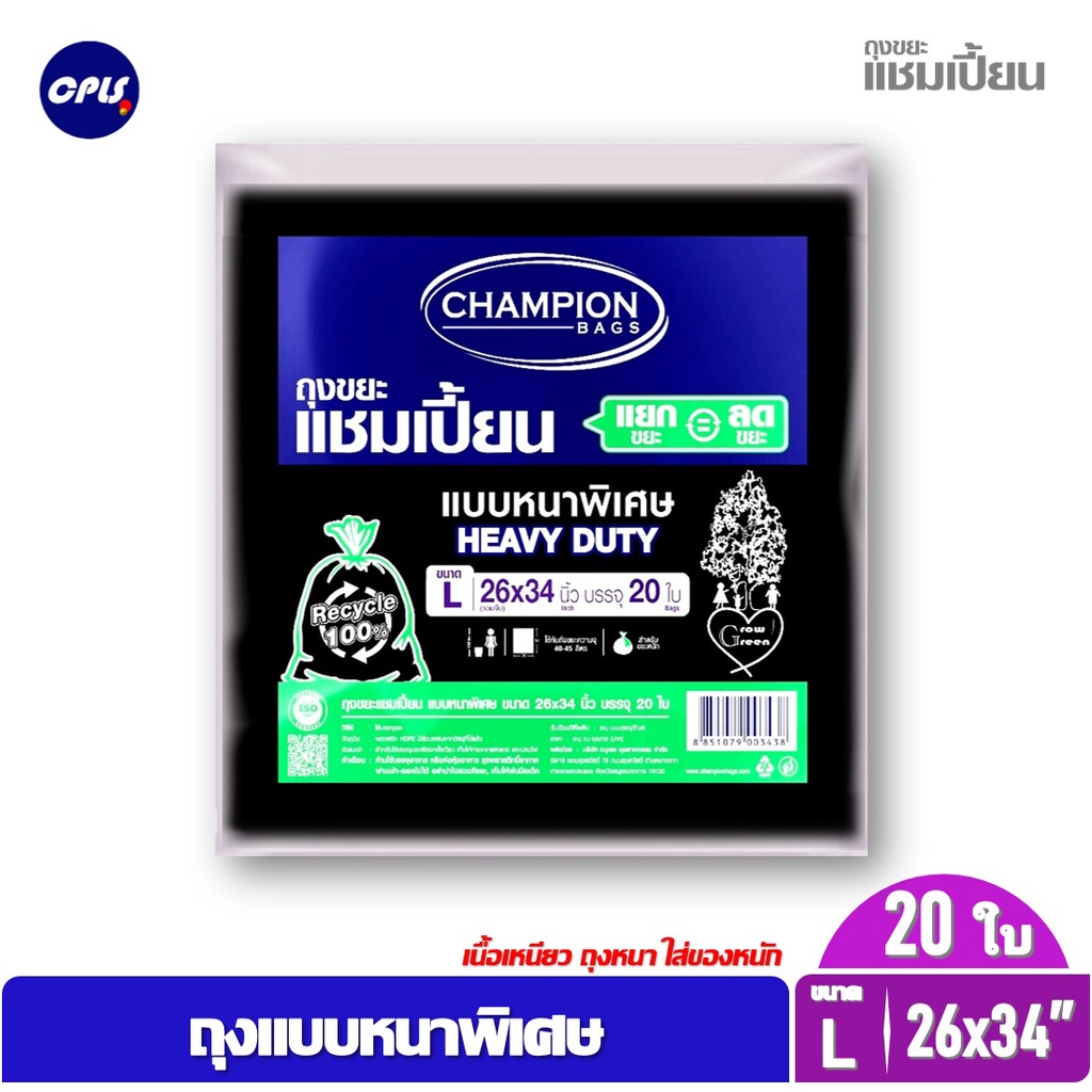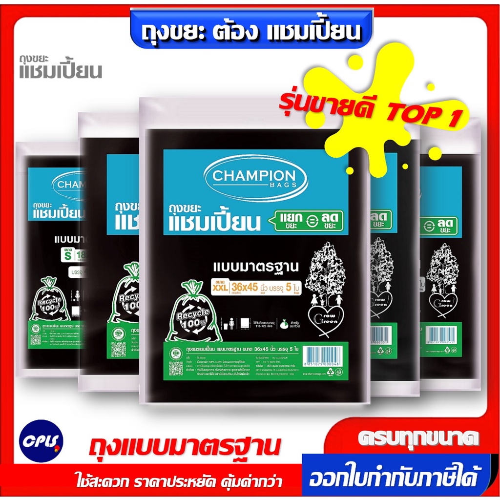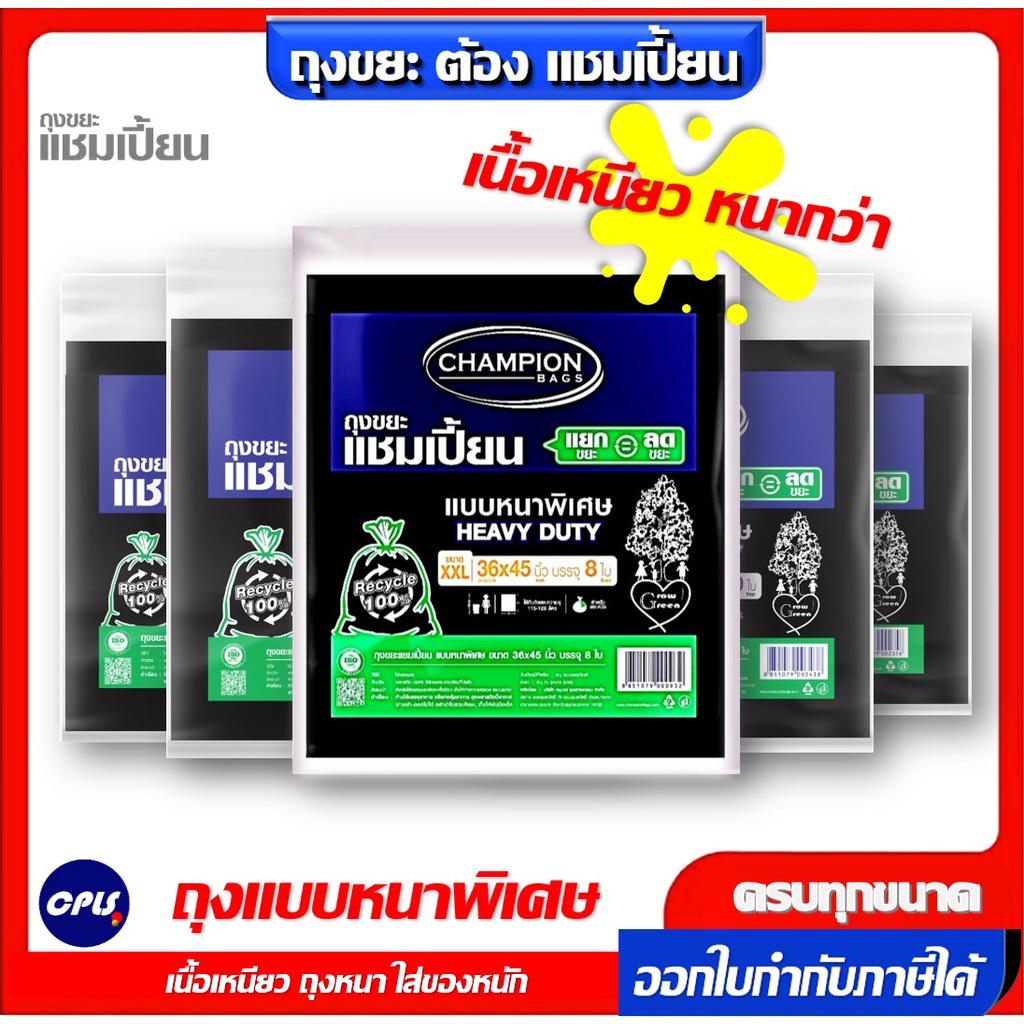 ถุงขยะดำ แชมเปี้ยน Championbags แบบมาตรฐาน ,แบบหนาพิเศษ เนื้อหนา เหนียว ทน ไม่รั่วซึมใช้งานง่าย