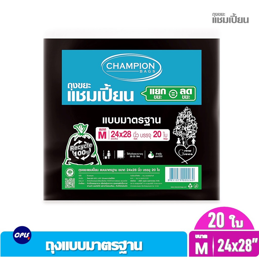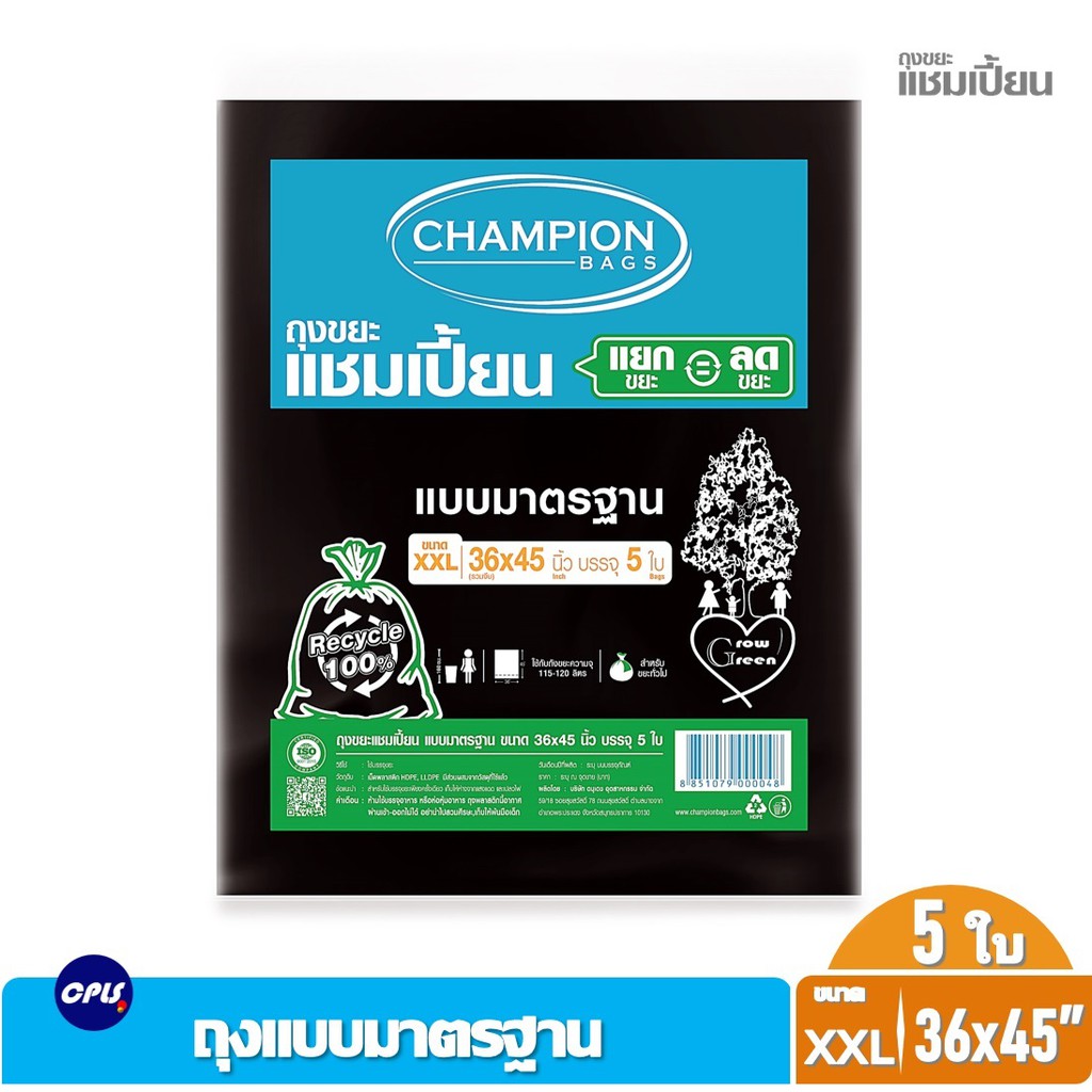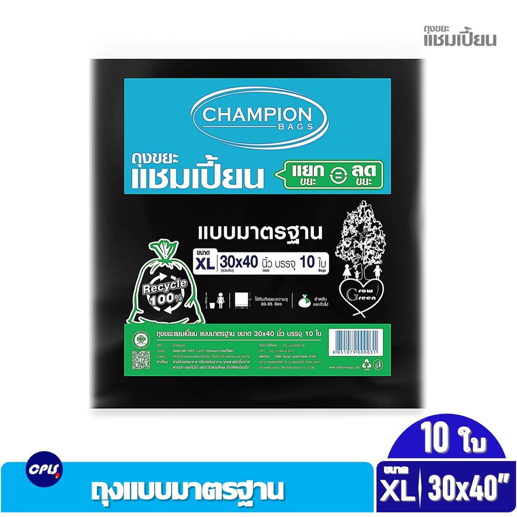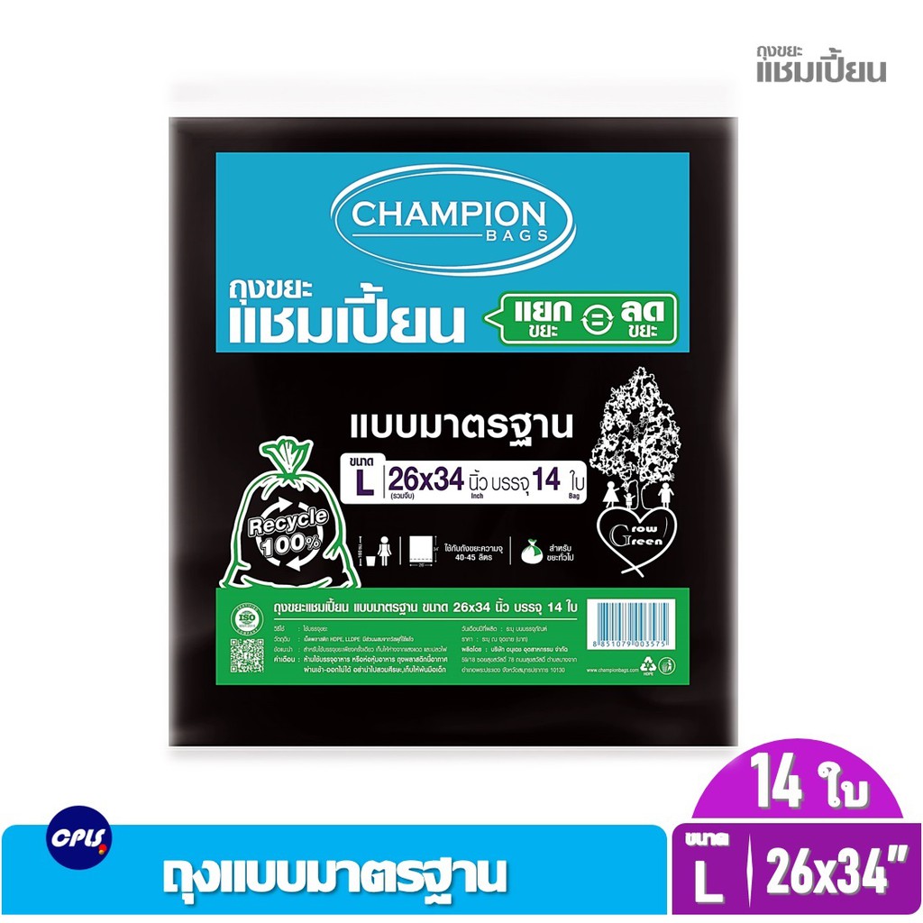ถุงขยะดำ แชมเปี้ยน Championbags แบบมาตรฐาน ,แบบหนาพิเศษ เนื้อหนา เหนียว ทน ไม่รั่วซึมใช้งานง่าย