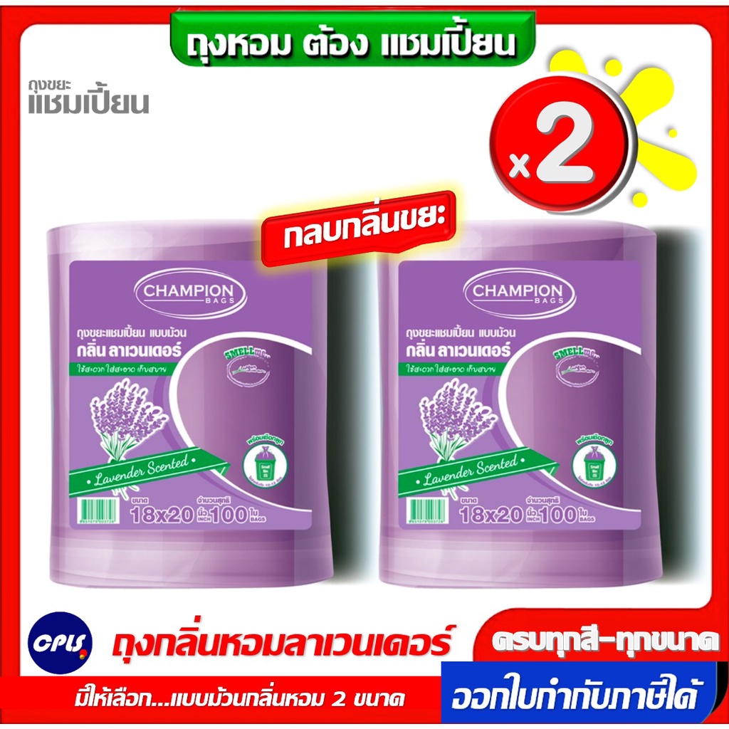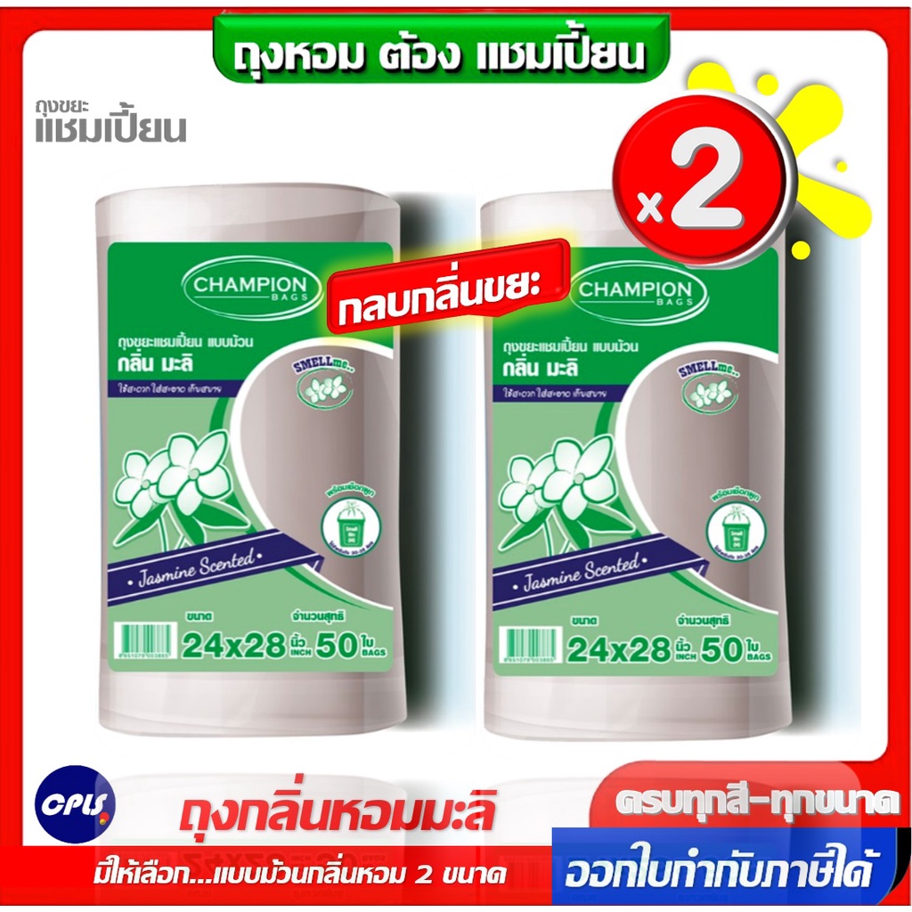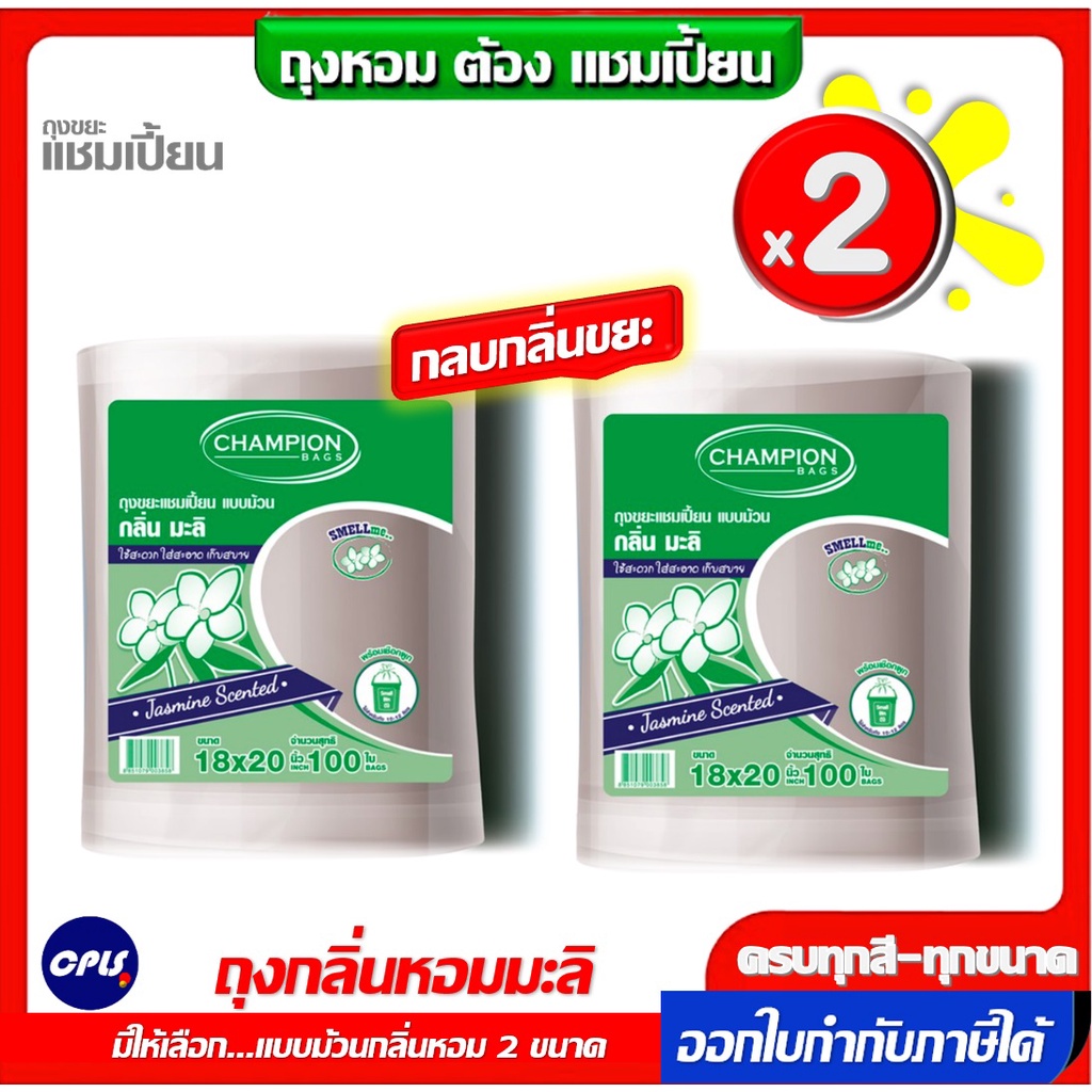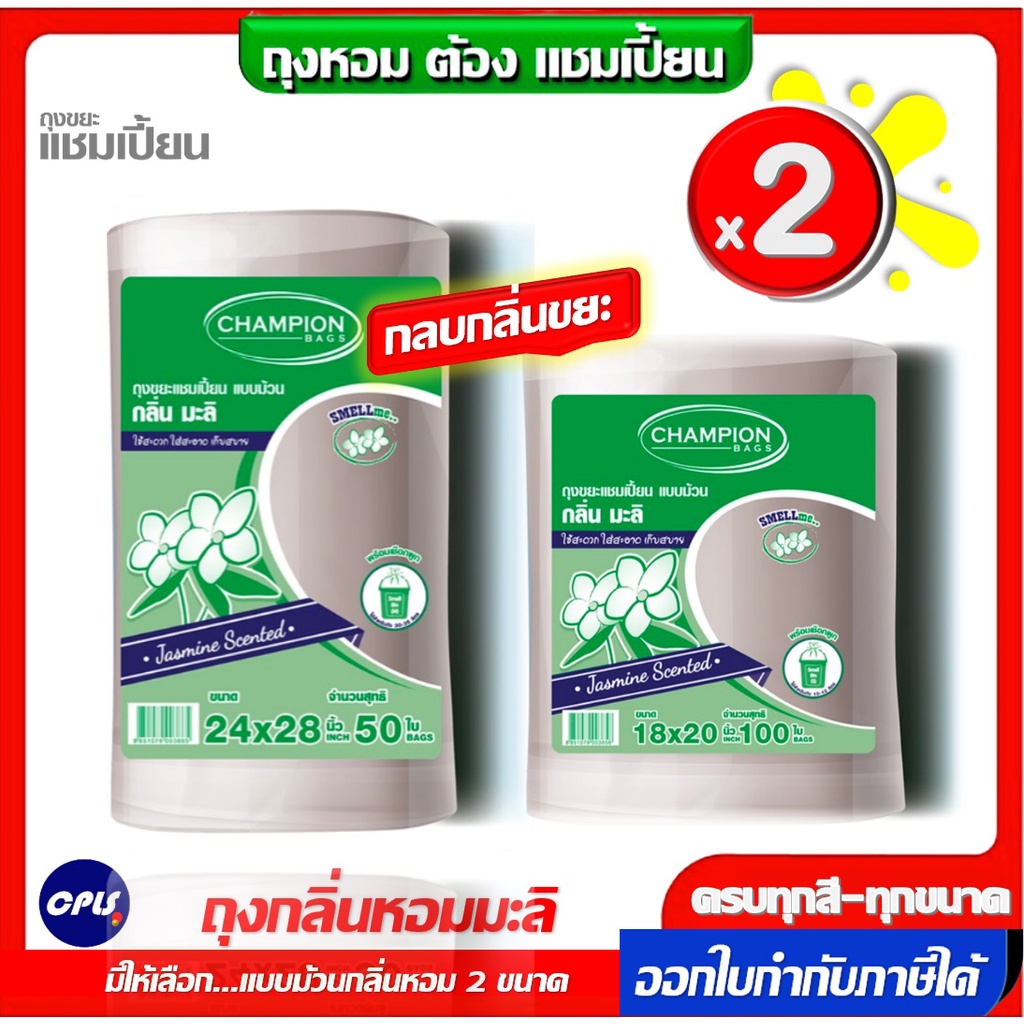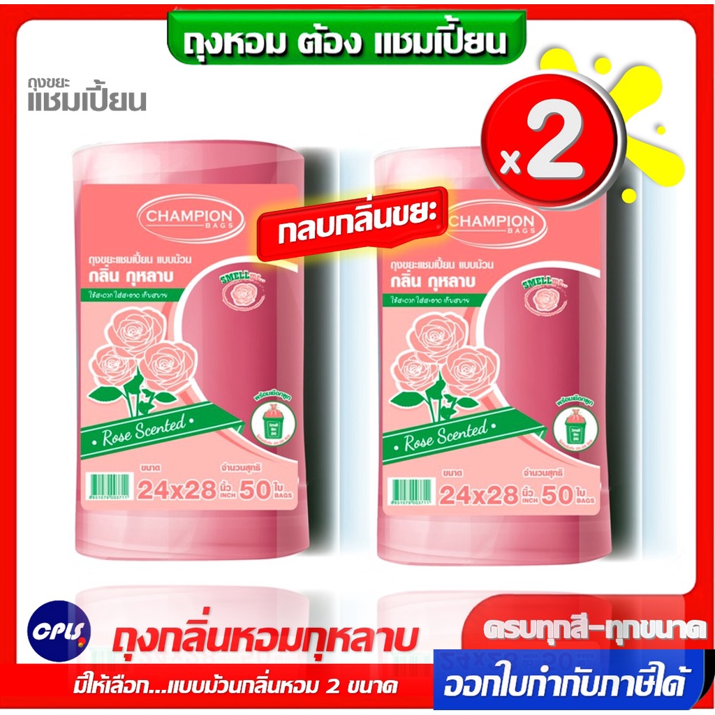 แพ็คคู่ 2ชิ้น ถุงขยะกลิ่นหอม Champion bags ขนาด18x20นิ้วและ 24x2นิ้ว ม้วนใหญ่