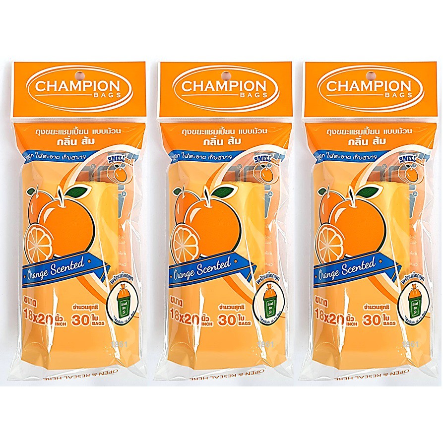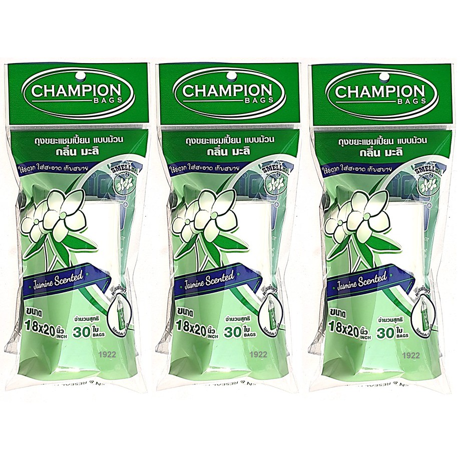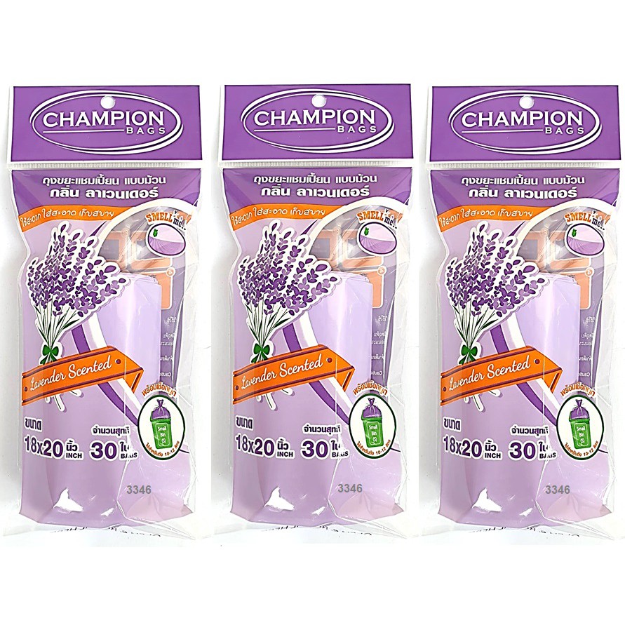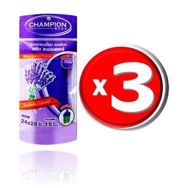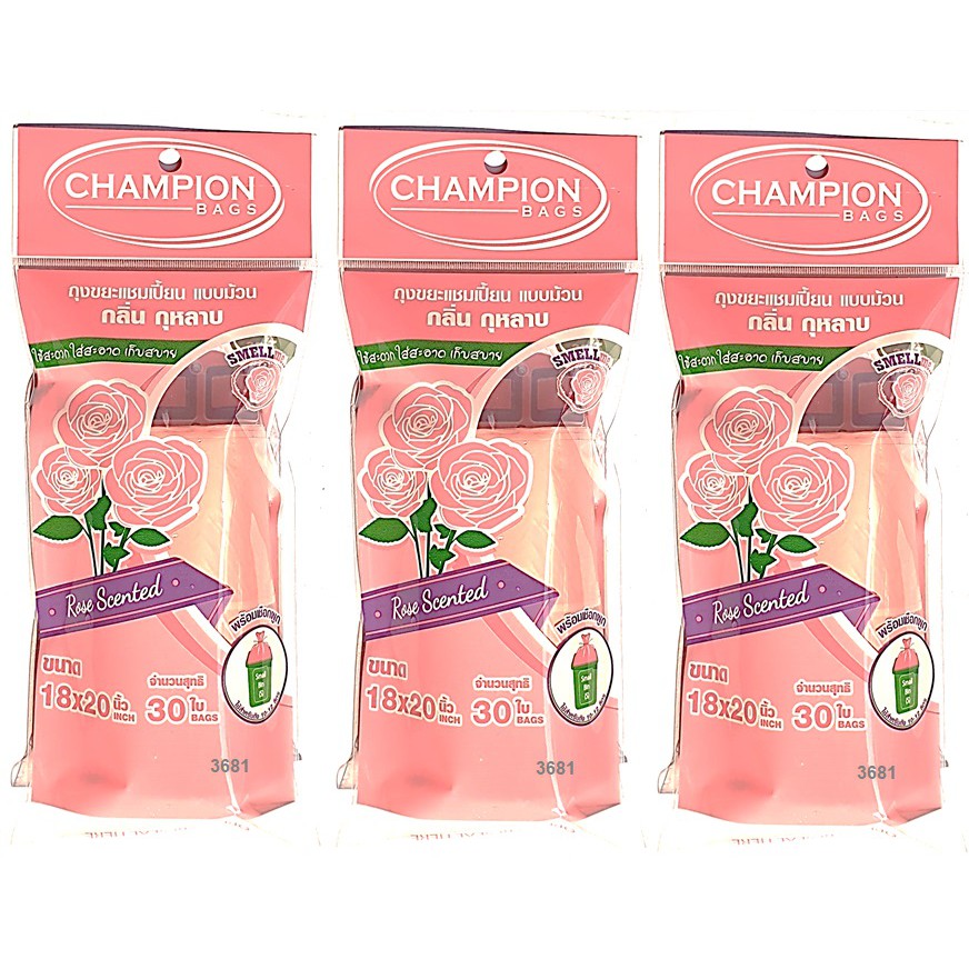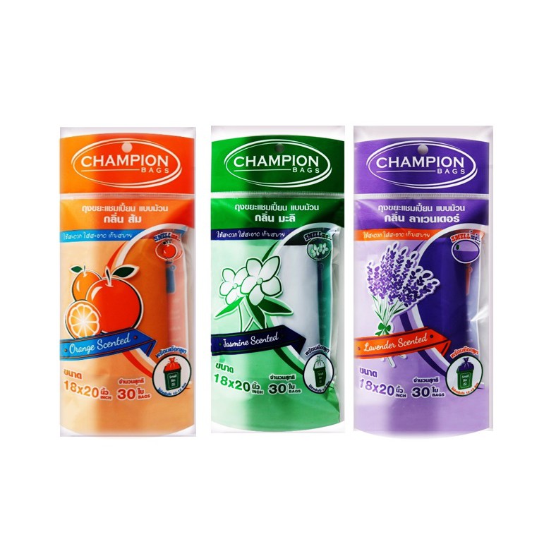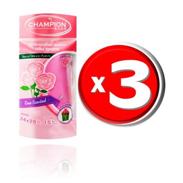 ถุงขยะห อมแชมเปี้ยน Champion แพ็ค3ชิ้น (สุ่มกลิ่น) ขนาด18x20"30ใบและ24x28"15ใบ พร้อมส่ง จัดส่งเร็ว