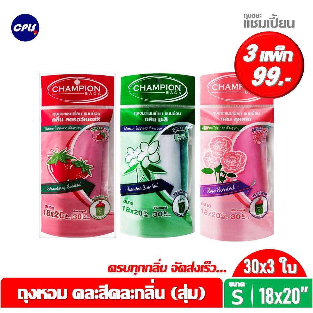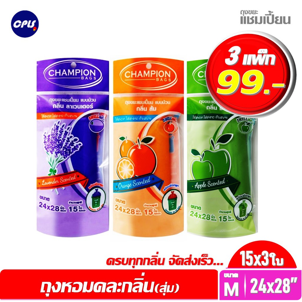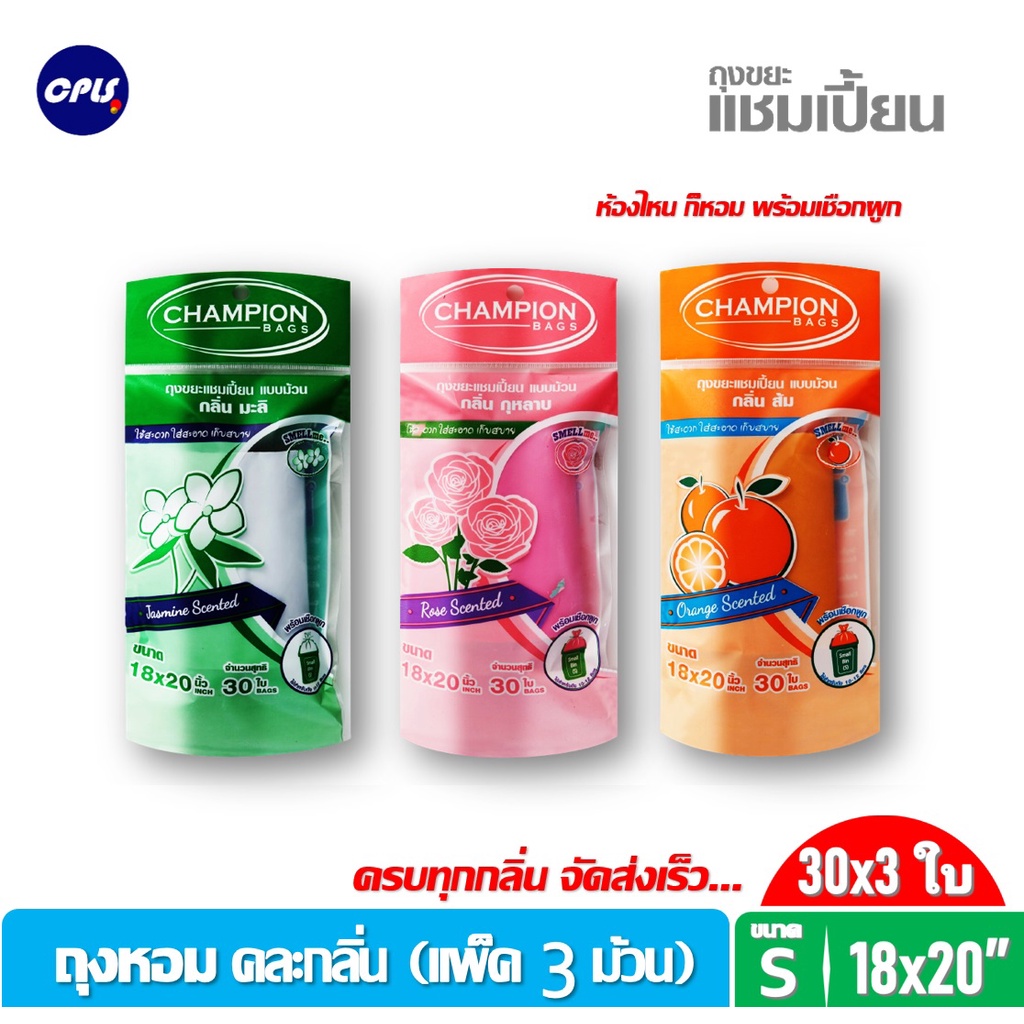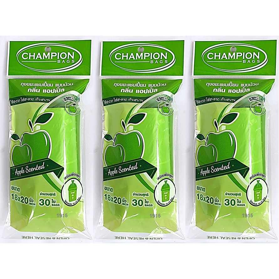 ถุงขยะห อมแชมเปี้ยน Champion แพ็ค3ชิ้น (สุ่มกลิ่น) ขนาด18x20"30ใบและ24x28"15ใบ พร้อมส่ง จัดส่งเร็ว