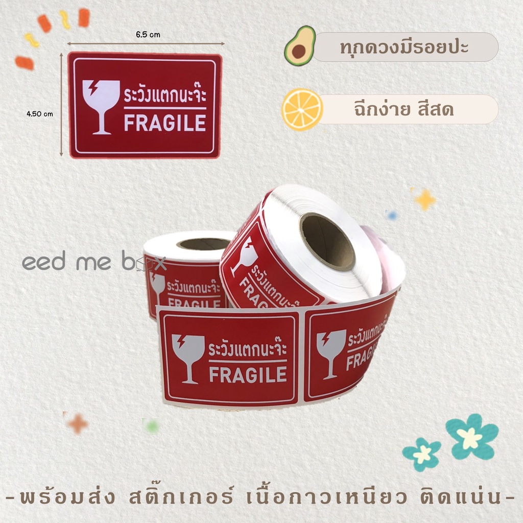สติ๊กเกอร์โปรดถ่ายวีดีโอ สติ๊กเกอร์ระวังแตก FRAGILE Sticker ขนาด 5.4*6.5 cm