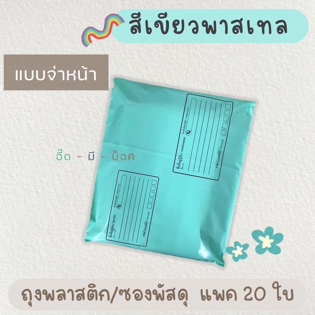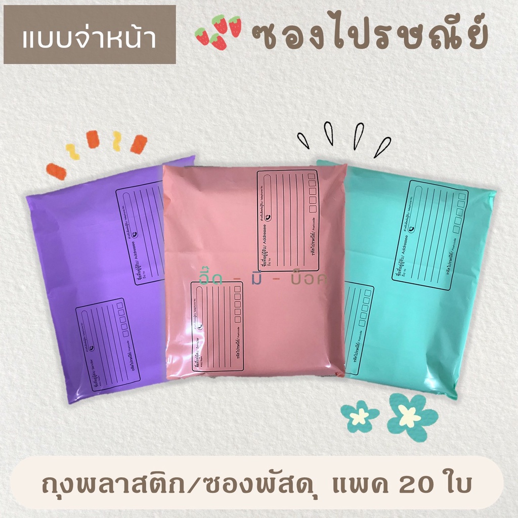 ซองไปรษณีย์พลาสติก สีพาสเทล แบบจ่าหน้า 20 ใบ ซองไปรษณีย์ ถุงไปรษณีย์ ถุงไปรษณีย์พลาสติก