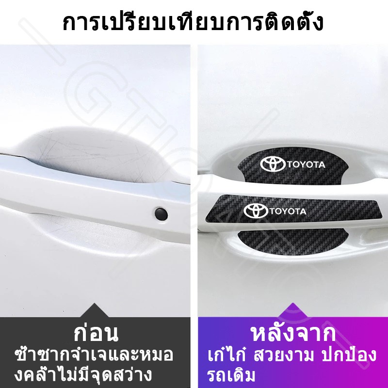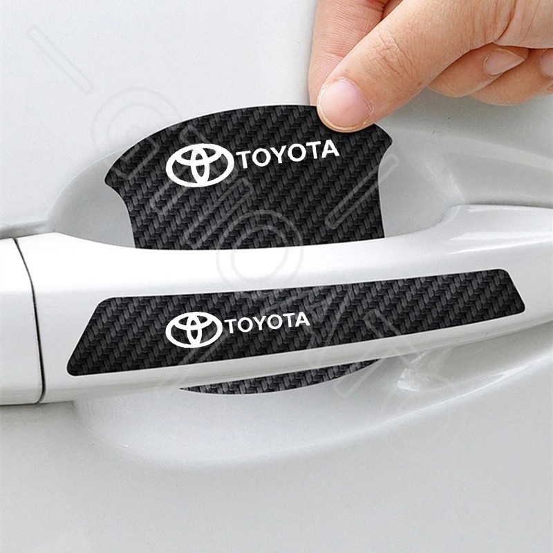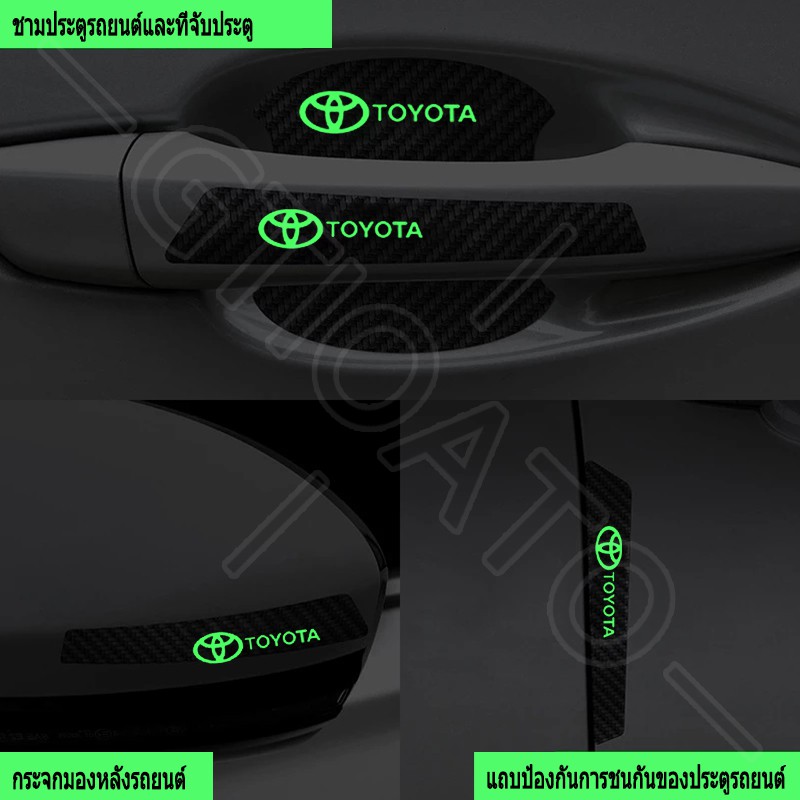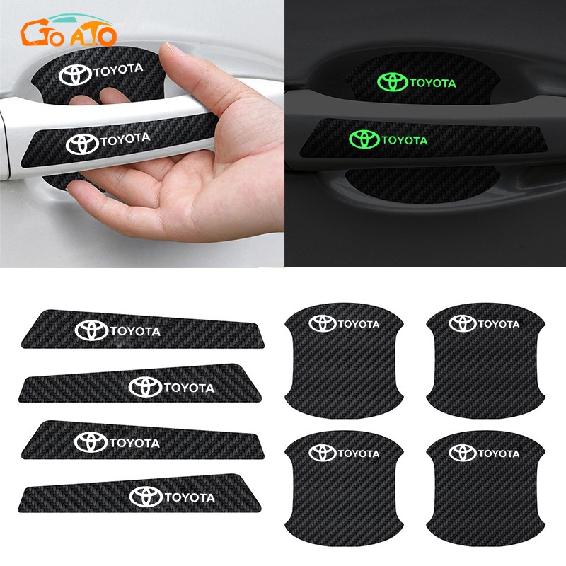 GTIOATO ติดมือจับประตูรถยนต์ คาร์บอนไฟเบอร์ส่องสว่าง ป้องกันรอย ติดรถ ที่จับ สำหรับ Toyota Vios Avanza Yaris Fortuner