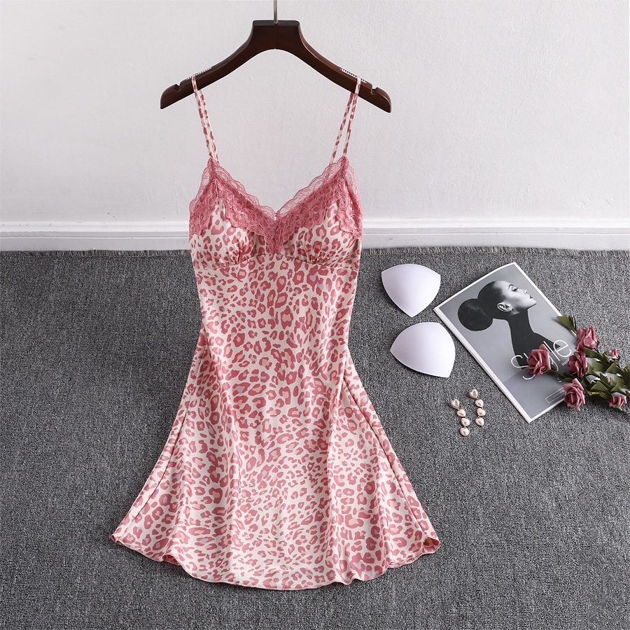 ชุดนอนสายเดี่ยว ลายเสือดาว แต่งลูกไม้ เซ็กซี่ สำหรับผู้หญิง SF8265