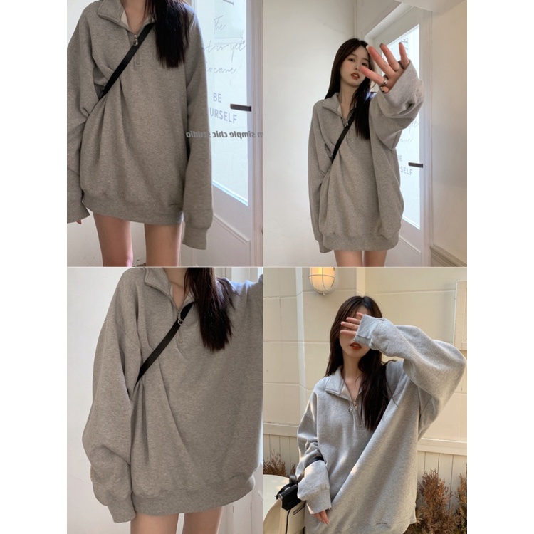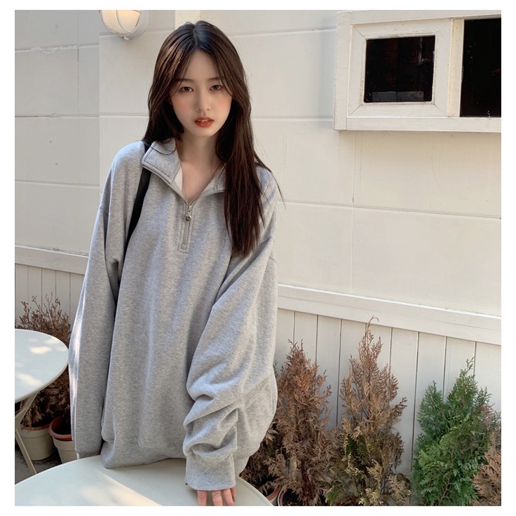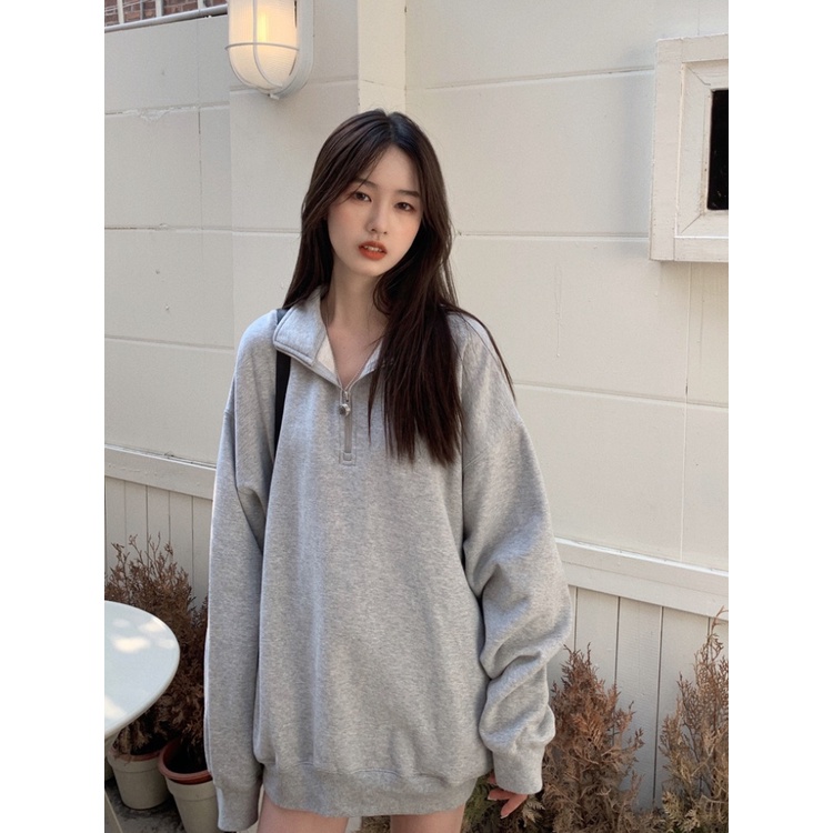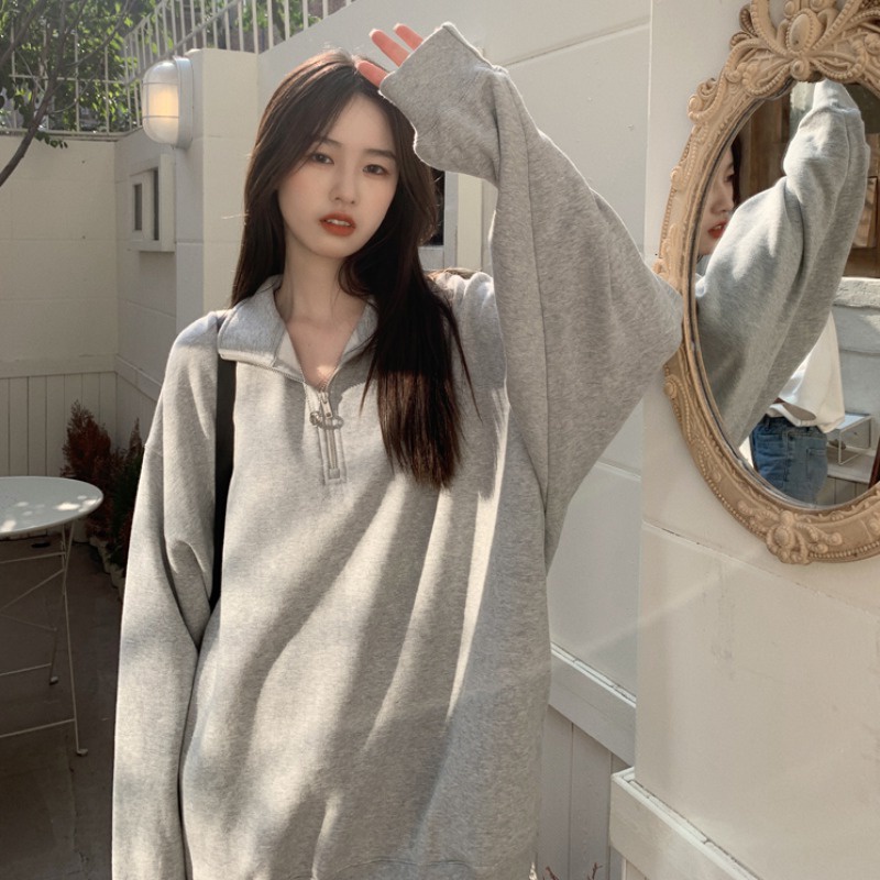 เสื้อกันหนาวผู้หญิงแขนยาว แจ็คเก็ตสีเทา เสื้อสเวตเตอร์แฟชั่น ผ้าฝ้าย สวมใส่สบาย SH500341