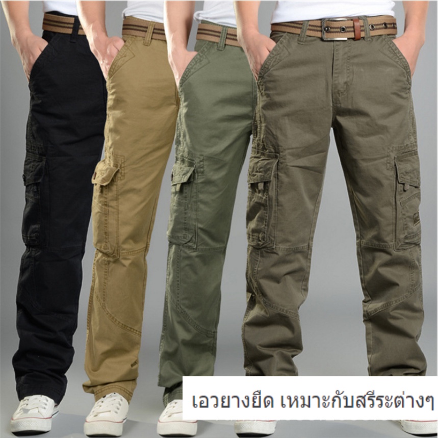 💥พร้อมส่ง💥 กางเกงขายาวลำลอง ทรงหลวม มีหลายกระเป๋า สำหรับผู้ชาย
