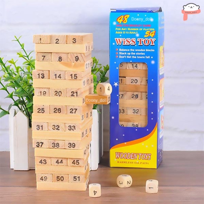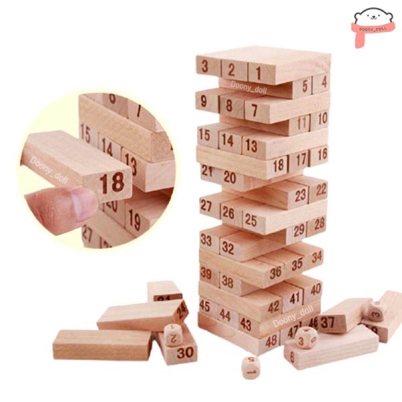 ตัวต่อไม้ตึกถล่ม 54 ชิ้น พร้อมลูกเต๋า 4ลูก ของเล่นไม้ งานไม้ เกมส์ต่อตึก ต่อตึก ตึกถล่ม SJ5206