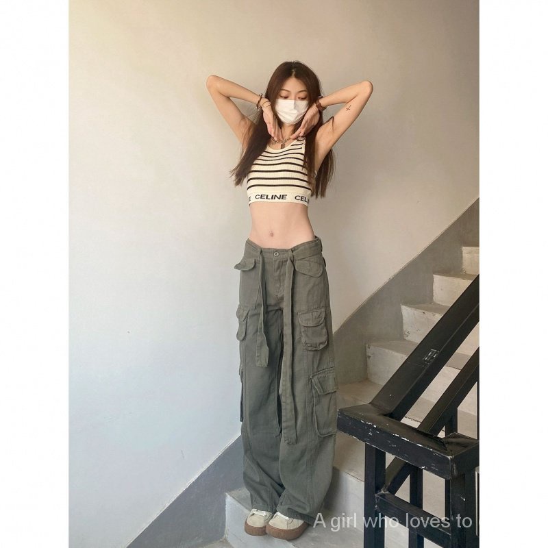 เสื้อแขนยาว กางเกงยีนคาร์โก้ แต่งเชือกตรง สวมใส่แล้วเท่ ดูมีเสน่ห์ เย้ายวนมาก Sk5594.