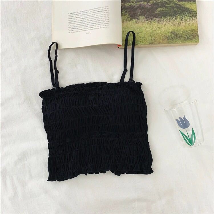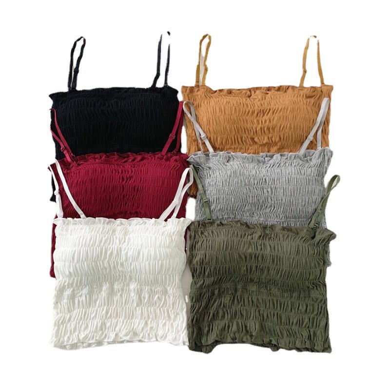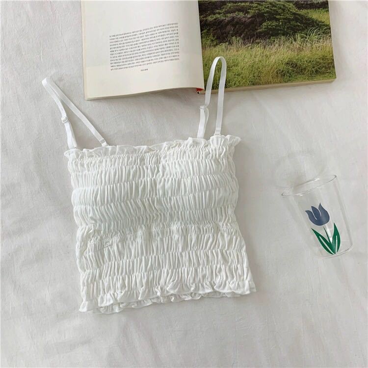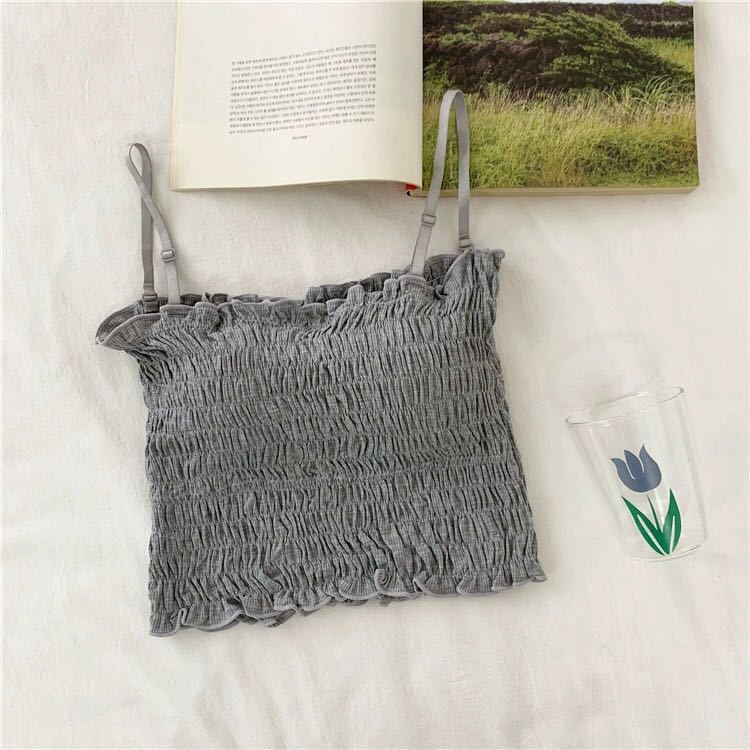 สายเดี่ยวผ้าย่น เสื้อสายเดี่ยวสีซัมเมอร์ ผ้านิ่มใส่สบาย สายเดี่ยว เส้นเล็ก สายสปาเก็ตตี้ เสื้อกล้าม มีฟองน้ำในตัว เสื้อครอป