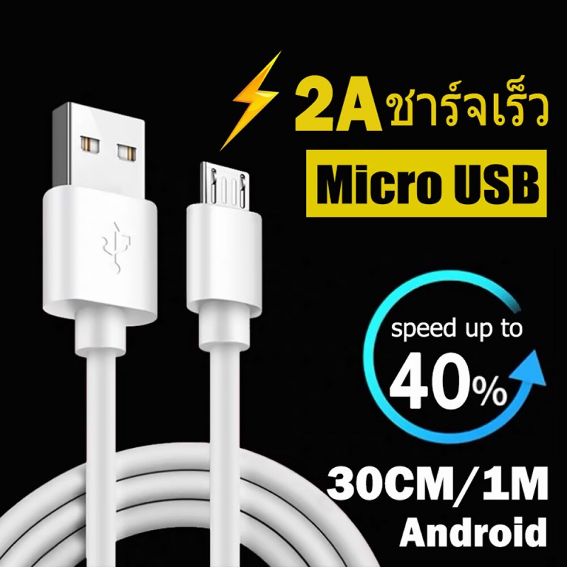 สายชาร์จโทรศัพท์ Micro USB ชาร์จเร็ว สำหรับ แอนดรอยด์ Oppo Samsung Vivo ความยาว 30 ซม. และ 100 ซม.