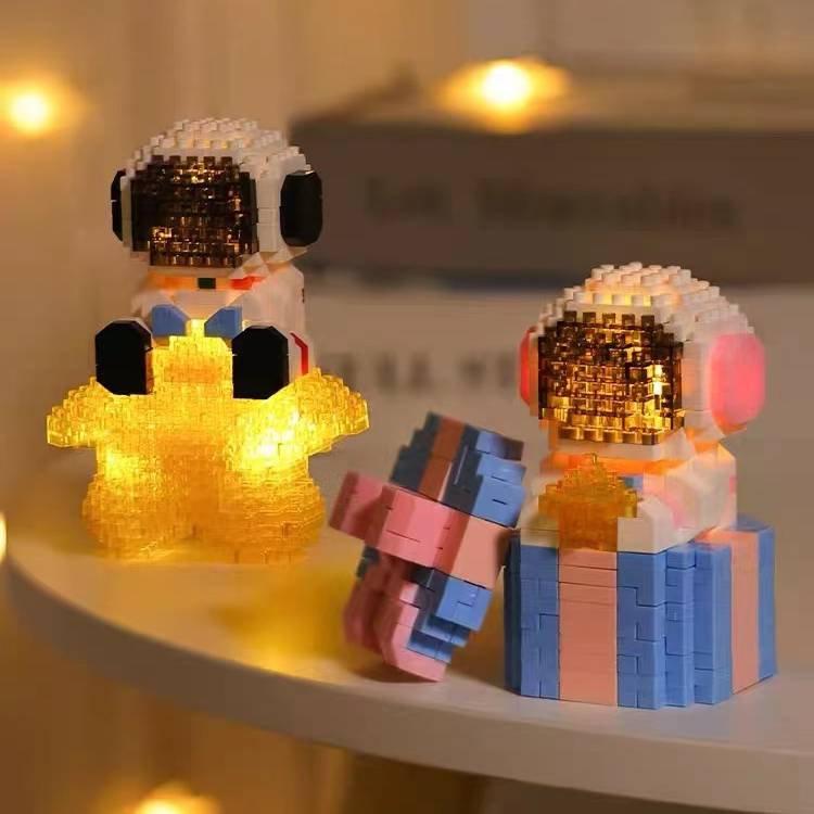 ของเล่นตัวต่อ รูปนักบินอวกาศ LEDO พร้อมไฟ DIY สําหรับเด็กผู้ชาย และเด็กผู้หญิง