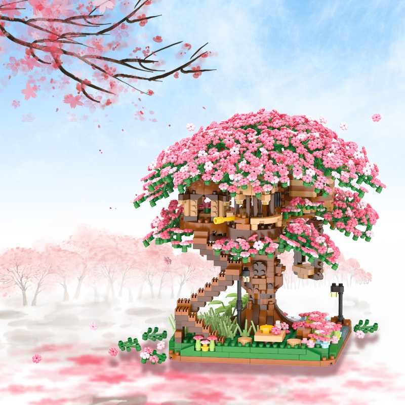 2138PCS DIY ตัวต่อเลโก้ บ้านต้นซากุระ แบบอย่างสถาปัตยกรรม บ้านต้นไม้ ดอกซากุระ ขนาดเล็ก ของเล่นเสริมการเรียนรู้เด็ก