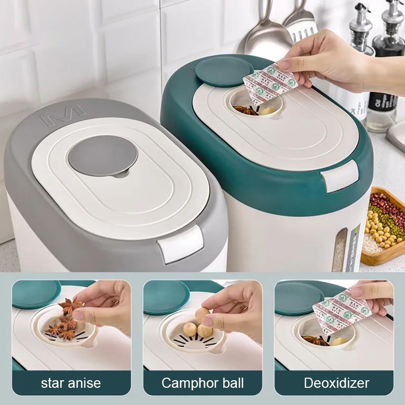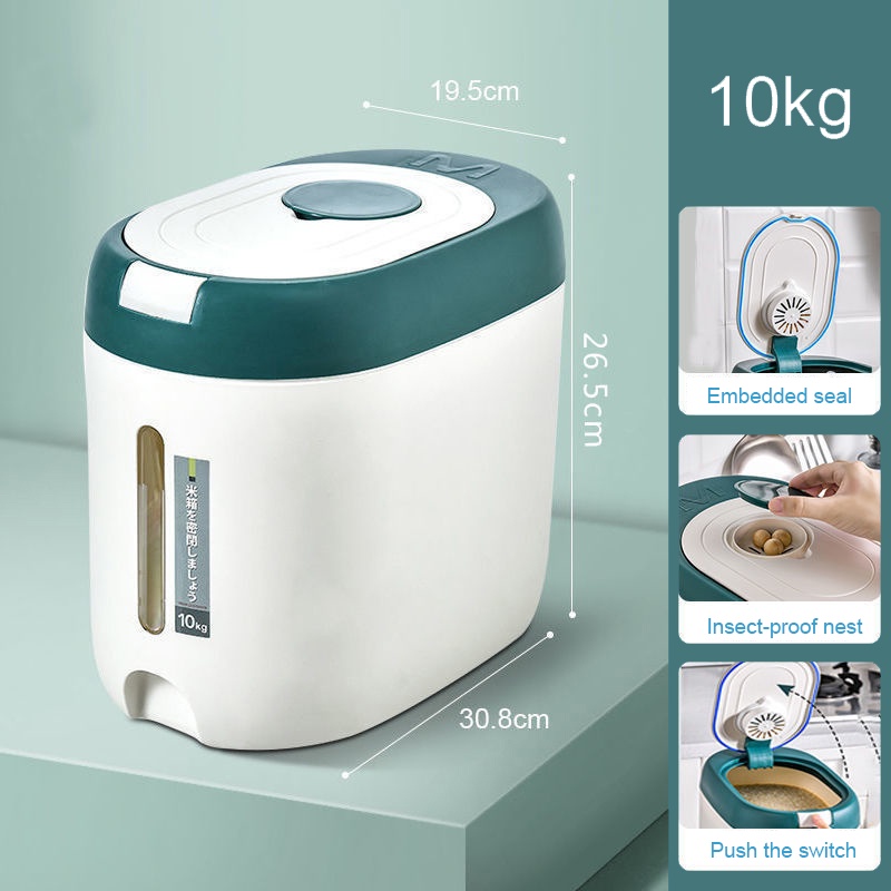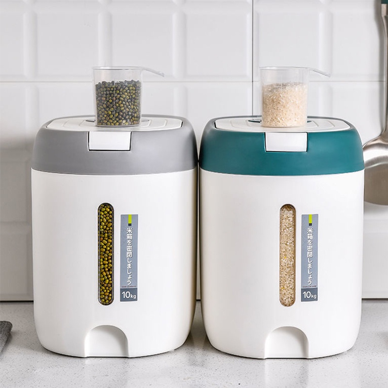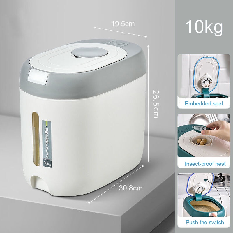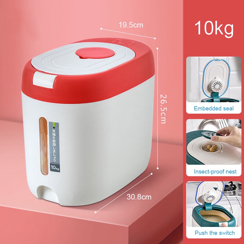 ถังใส่ข้าวสาร 5 กิโลกรัม ลังใส่ของพลาสติกสไตล์ญี่ปุ่น ขนาด 10 กิโลกรัม ถังข้าวกันแมลงและกันความชื้นซีเรียลถังเก็บแป้งกล่องเก็บข้าว