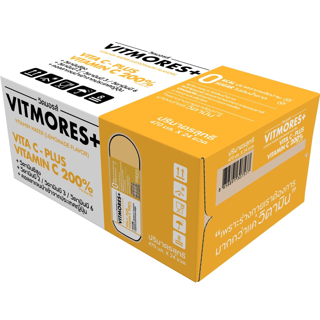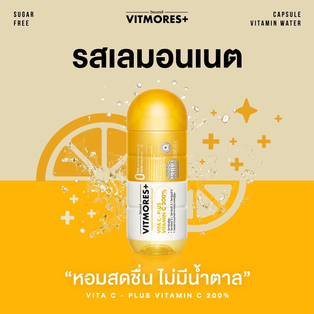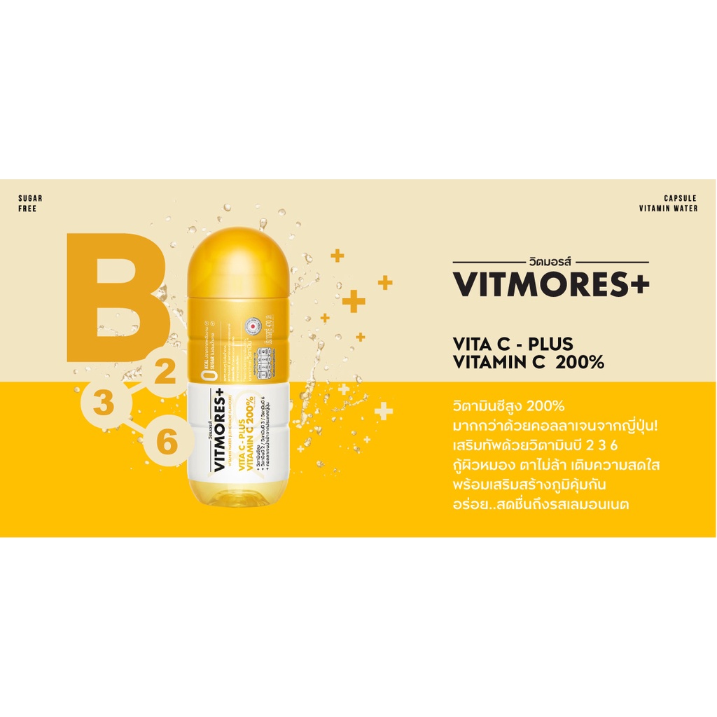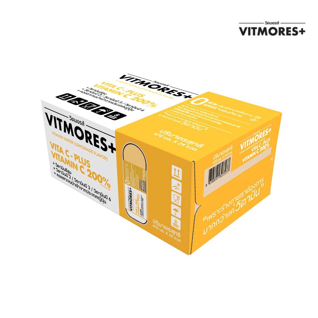 VITMORES+ VITA C - PLUS VITAMIN C 200% 470ml. / วิตมอรส์ น้ำผสมวิตามิน รสเลมอน 470 มล. ( 1 ลัง 24 ขวด )